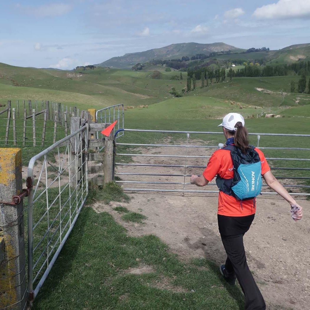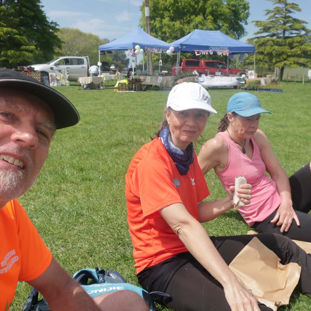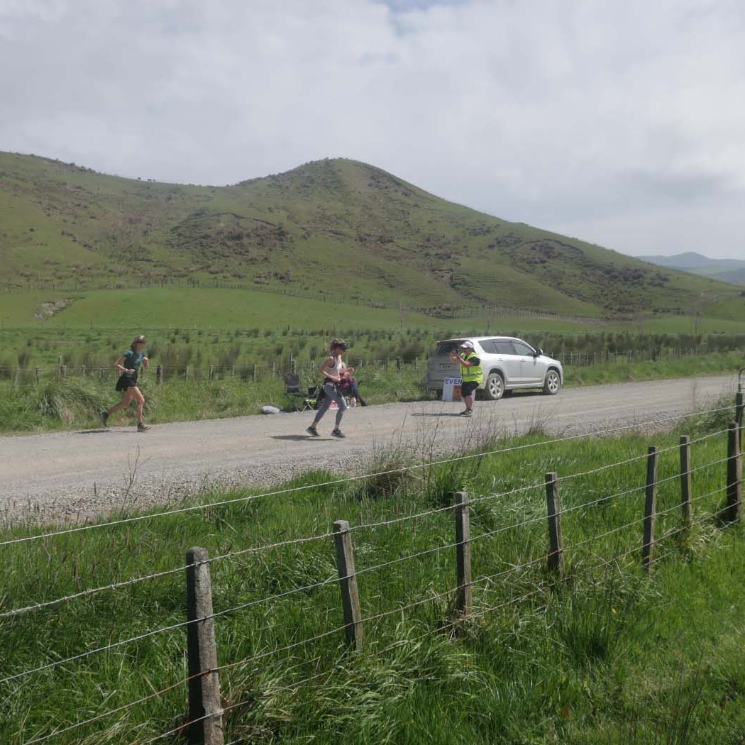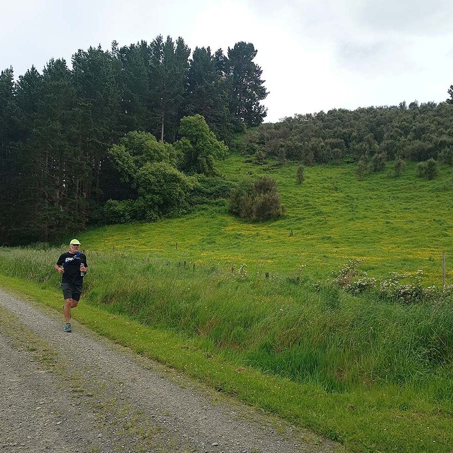 Arriving early in Waipukurao at the A&P grounds, we signed in, and got our trackers that go around your ankle to record your laps and time. Luckily the organisers used a shed for the corral where we could leave our provisions, to be close-by, stay dry, and be easily accessible between laps. We went back to the car to have breakfast and a coffee, before heading back to the shed. Chatting away, it still hadn’t sunk in that we were about to start an event. Before you know it, time was up. I still needed to make a pee stop, so went to the nearest loo. Someone was inside, taking his time, and there were two ladies in front of me. With three minutes to go, a couple of us still had to use the facility. When it finally got to my turn, there was a minute left, and I was frantically trying too pee, wipe, flush, sanitise, open door, and get back to the corral in time for the start. As the door was shutting behind me, I was still pulling up my pants, while running to the start.