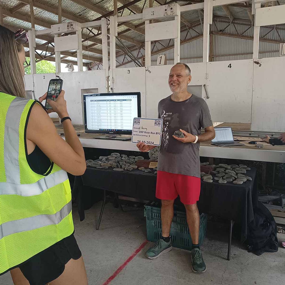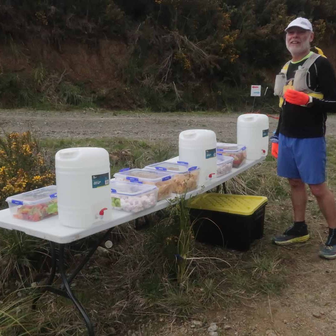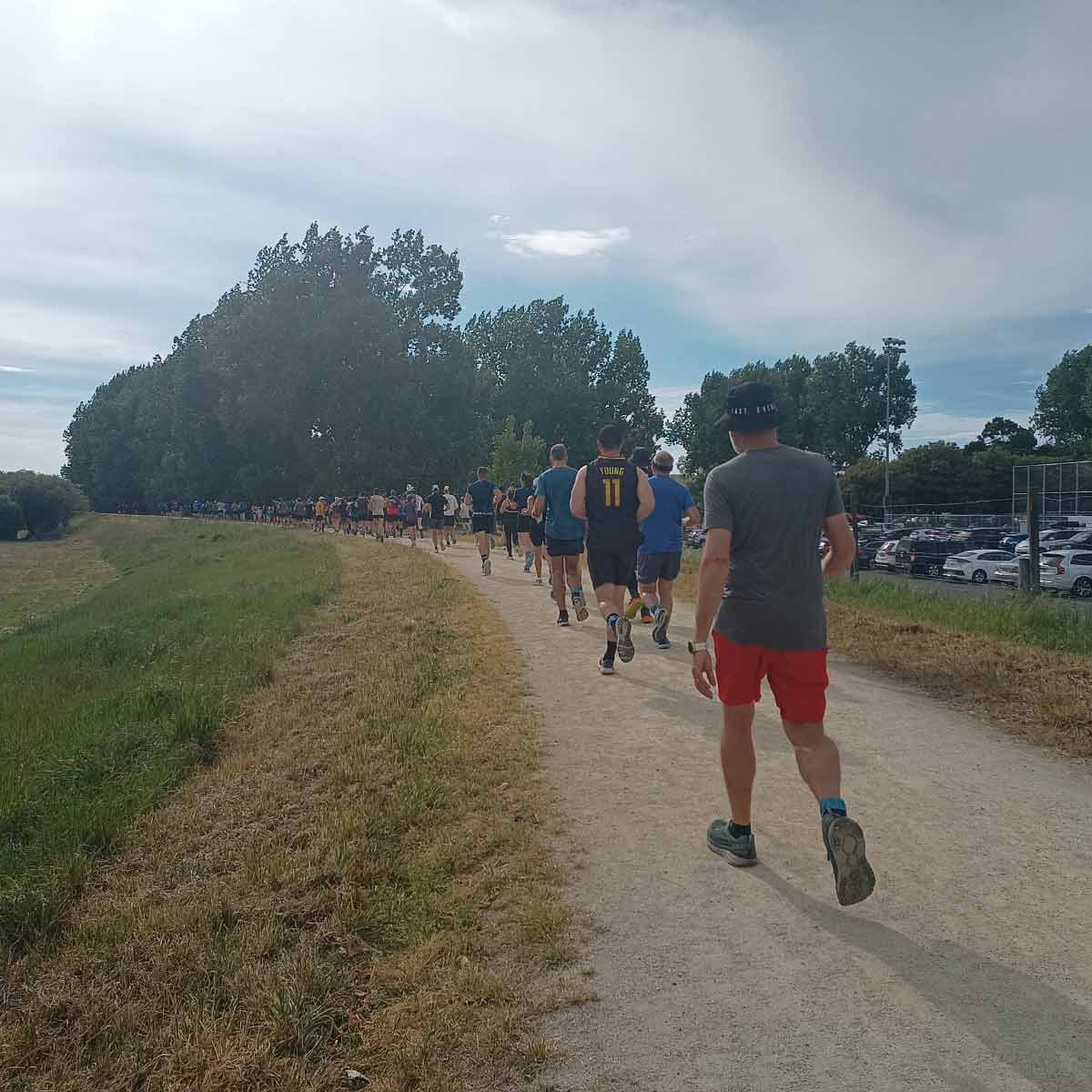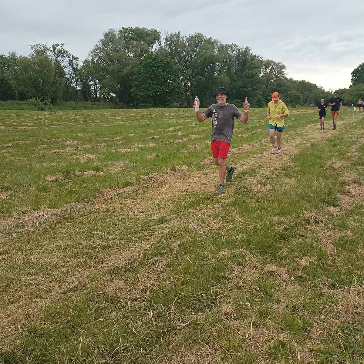Arriving early in Waipukurao at the A&P grounds, we signed in, and got our trackers that go around your ankle to record your laps and time. Luckily the organisers used a shed for the corral where we could leave our provisions, to be close-by, stay dry, and be easily accessible between laps. We went back to the car to have breakfast and a coffee, before heading back to the shed. Chatting away, it still hadn’t sunk in that we were about to start an event. Before you know it, time was up. I still needed to make a pee stop, so went to the nearest loo. Someone was inside, taking his time, and there were two ladies in front of me. With three minutes to go, a couple of us still had to use the facility. When it finally got to my turn, there was a minute left, and I was frantically trying too pee, wipe, flush, sanitise, open door, and get back to the corral in time for the start. As the door was shutting behind me, I was still pulling up my pants, while running to the start.