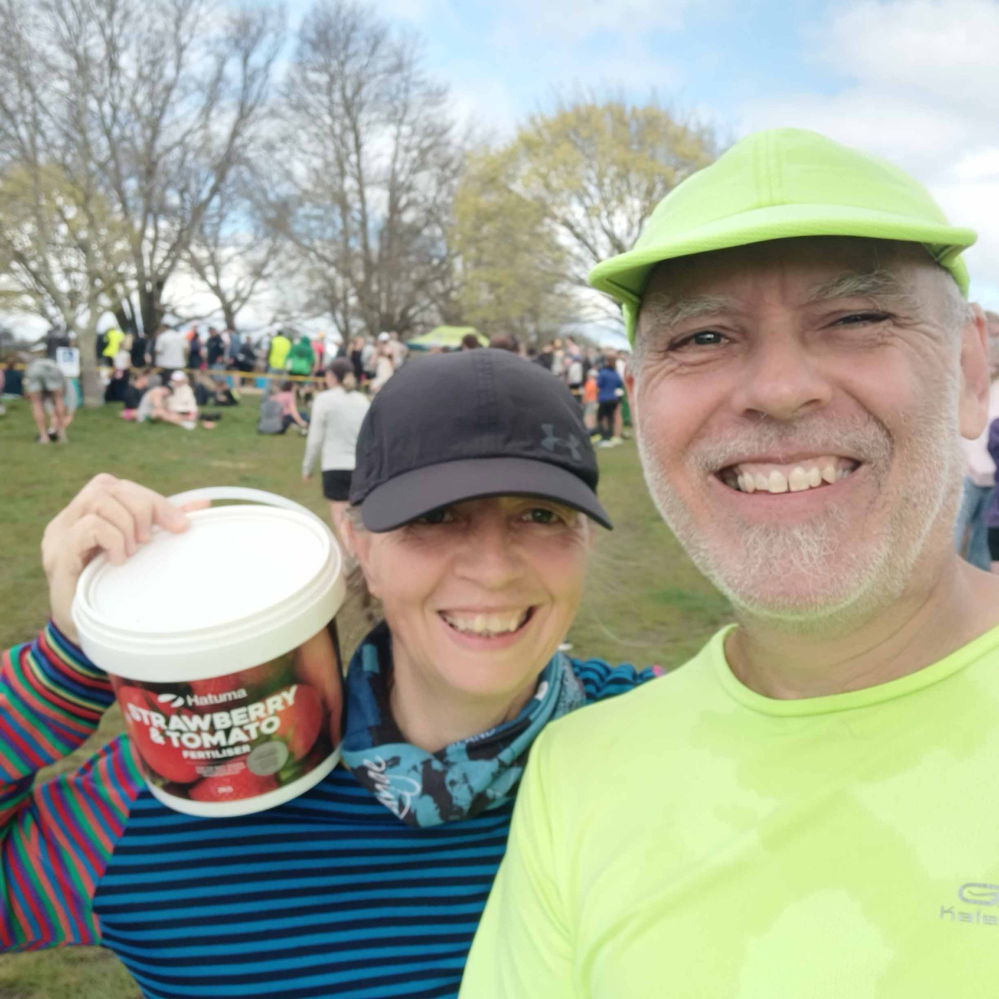 I started to slow down a bit, but still kept the pace in under seven minutes per kilometre, until we hit the hilly stretch in the second half past the rail road. Every here and there I had to walk short bits to get up the hills, but I was surprised to be able to run most of the way. Near the air strip, I was going slower than I hoped. This carried on until the finish, with more walk breaks, even on the flats. At the finish, Gerry’s name was called to collect a spot prize. Unfortunately it was for a massage or something in Central Hawkes’ Bay, which he would likely not use, so he returned it, to which they gave him some tomato fertiliser! We’ve got fertiliser the very first time we did the event in 2011, and I always love a good practical spot prize.
