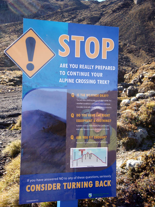 DSC01822 Published November 9, 2013 at 600 × 800 in Tongariro Northern Circuit – 30 December 2010 to 2 January 2011 ← Previous Next → When you see scary signs like this one … ignore them! 😉
