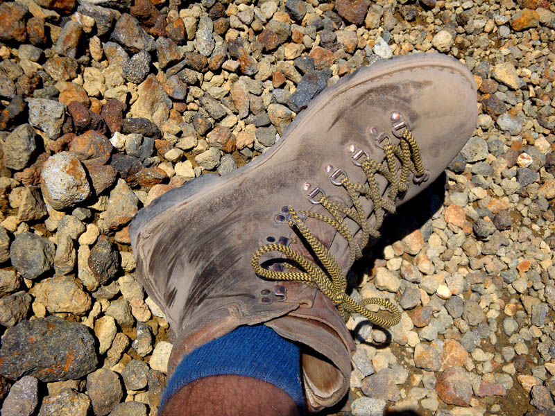 DSC01884 Published November 9, 2013 at 800 × 600 in Tongariro Northern Circuit – 30 December 2010 to 2 January 2011 ← Previous Next → Dusty old shoes – took quite a beating skidding down the slope.
