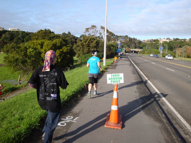 he turn around point clearly marked, but everybody followed each other to turn after the second cone leading to the little path on the left, which takes you to the other side of the bridge making us miss the route markers. The 10km runners went straight ahead for an additional loop around Massey campus.