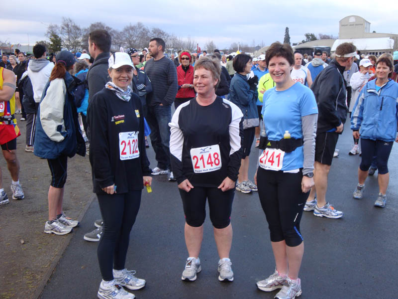 DSC02752 Published November 16, 2013 at 800 × 600 in Mizuno Half Marathon (Taupo) – 7 August 2011 ← Previous Next → Nervous smile? Me, Des (looking seriously in doubt, or maybe just peeved with all the pics been taken?) and Henriette.
