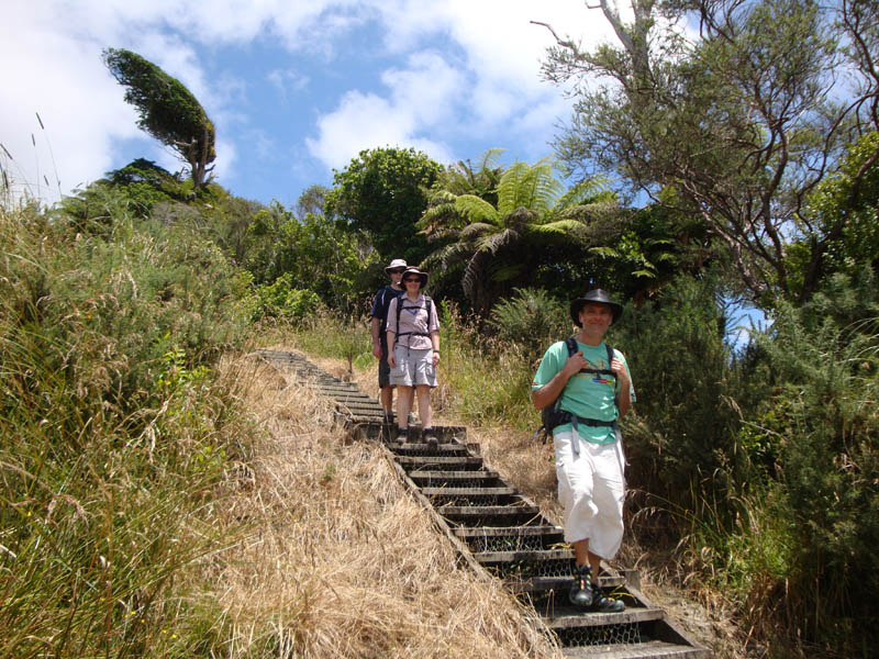 DSC03214 Published November 21, 2013 at 800 × 600 in White Cliffs Walkway – 26 December 2011 ← Previous Next → Deon, Henriette and Gerry in front. Evidence of strong winds can be seen by die angle of the tree on the hill.