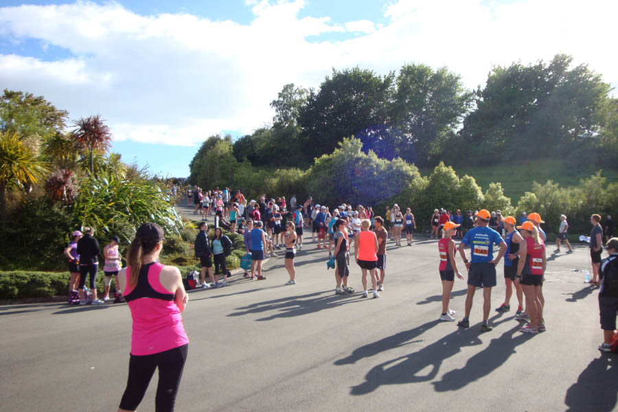 DSC04021 Published December 9, 2013 at 900 × 600 in Run Mahana 21.1km – 1 December 2013 ← Previous Next → Briefing at the Woollaston Estate parking area – the orange caps are the pace setters.