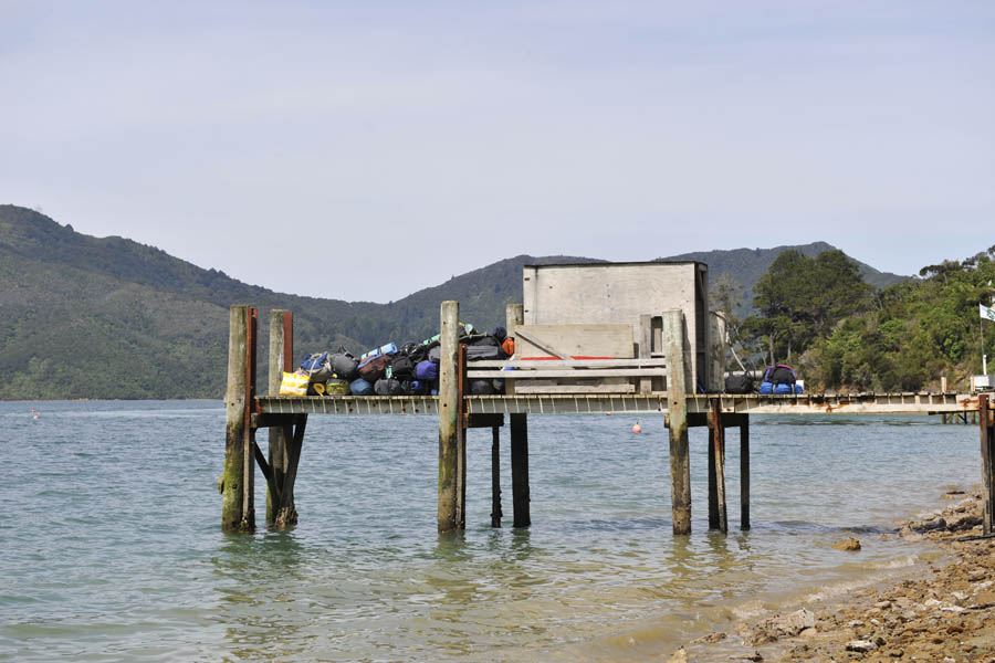 _DSC8334 Published December 10, 2013 at 900 × 600 in Queen Charlotte Track (2 – 5 December 2013) ← Previous Next → The backpacks of 30+ girls on the jetty – an early sign of a rather jolly night ahead in the middle of nowhere.