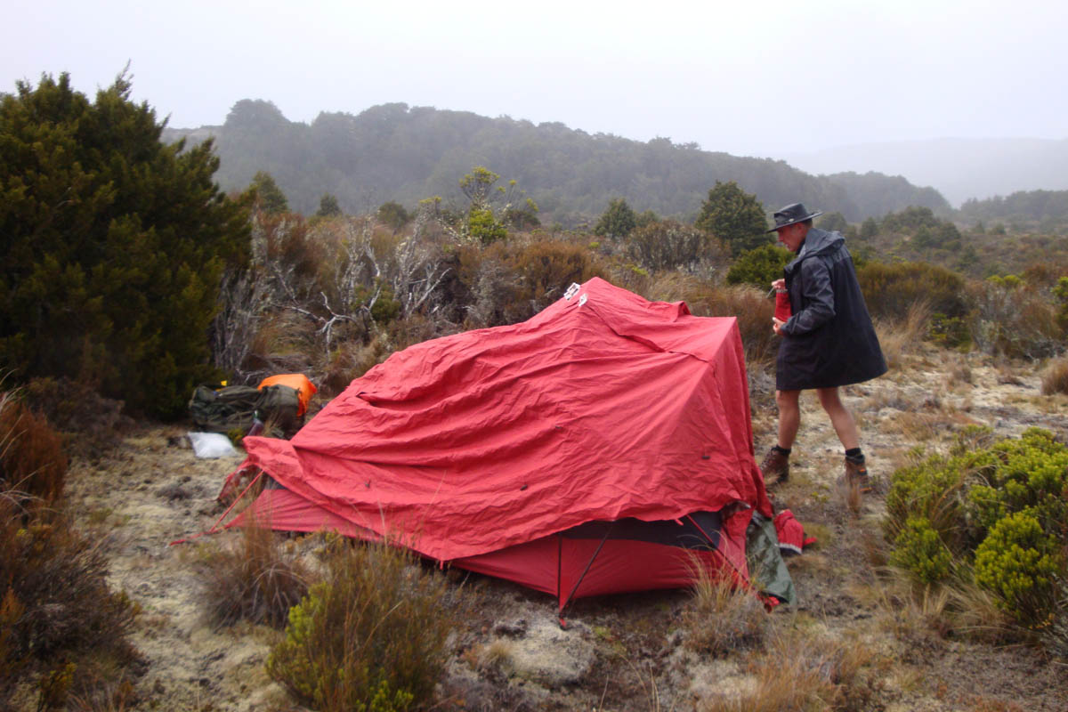DSC04291 Published January 3, 2014 at 1200 × 800 in Round the Mountain Track (25-29 December 2013) ← Previous Next → Pitching the tent in wind is no easy feat.