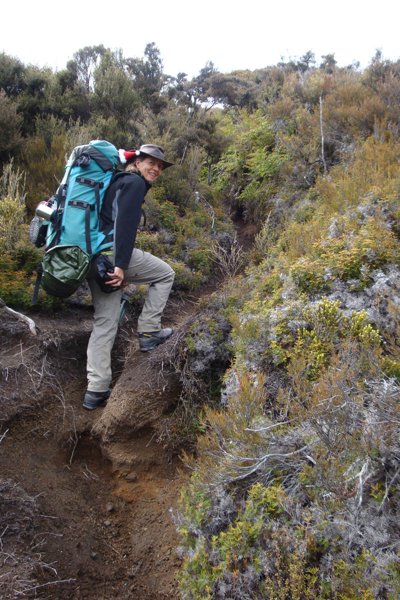 DSC04318 Published January 3, 2014 at 800 × 1200 in Round the Mountain Track (25-29 December 2013) ← Previous Next → We thought the track was eroded on day two, but this was nothing compared to the last day.