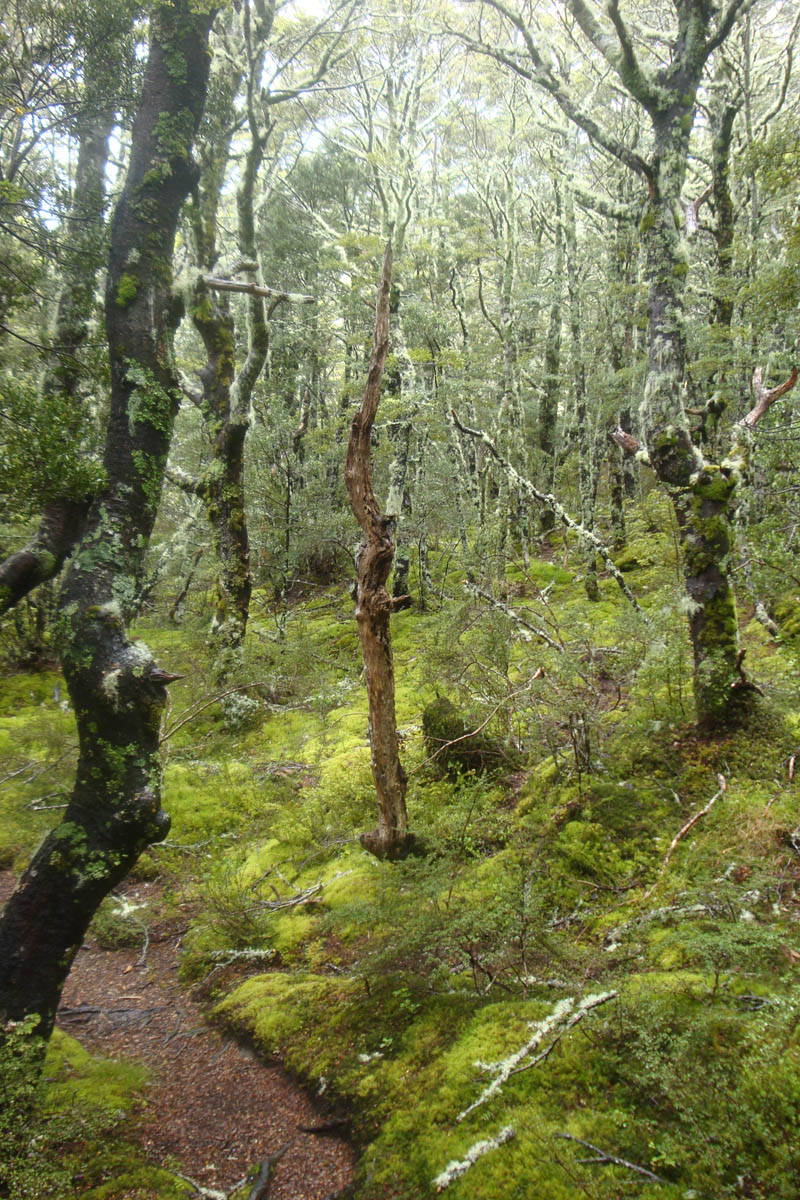 DSC04389 Published January 3, 2014 at 800 × 1200 in Round the Mountain Track (25-29 December 2013) ← Previous Next → Reaching the tree-line, and stepping into a mountain beech forest fairy land.