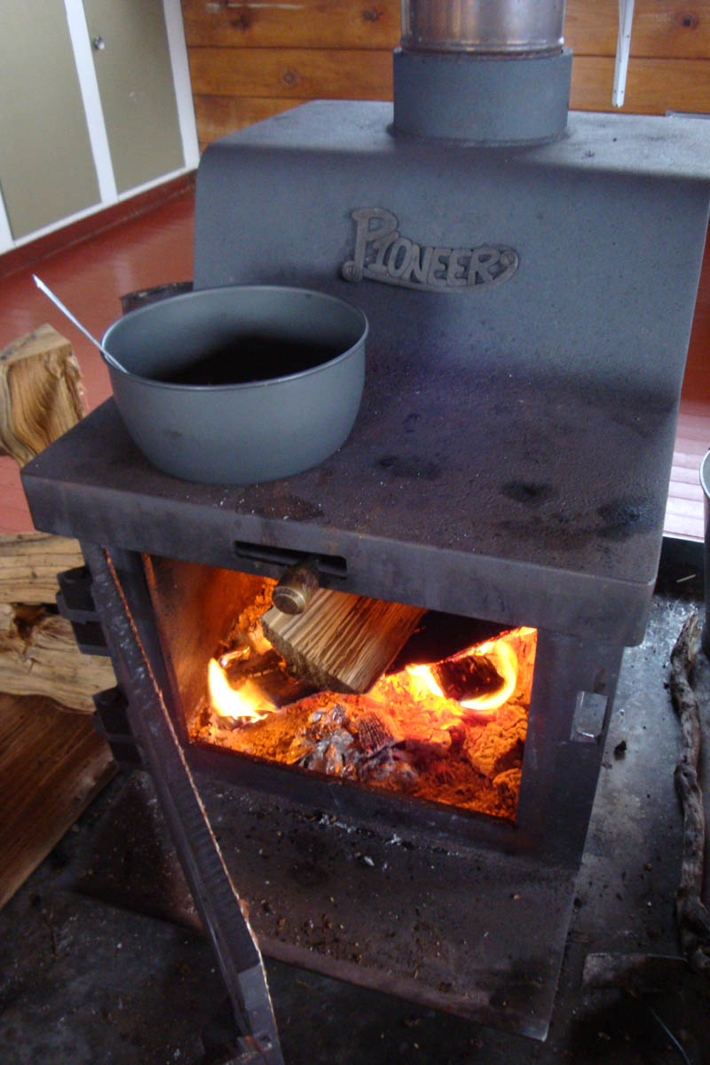 DSC04405 Published January 3, 2014 at 800 × 1200 in Round the Mountain Track (25-29 December 2013) ← Previous Next → The Pioneer stove used for heat and cooking dinner.