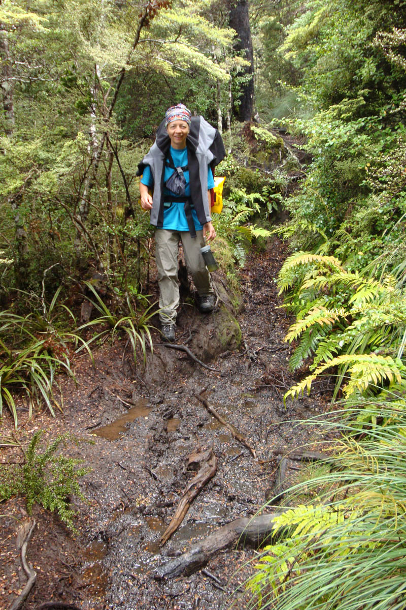 DSC04423 Published January 3, 2014 at 800 × 1200 in Round the Mountain Track (25-29 December 2013) ← Previous Next → The continuous rain turned the paths to a muddy pulp.
