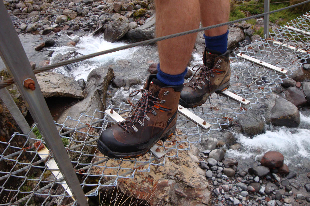 DSC04426 Published January 3, 2014 at 1200 × 800 in Round the Mountain Track (25-29 December 2013) ← Previous Next → Another one-person swing bridge.