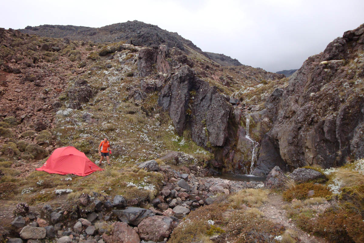 DSC04465 Published January 3, 2014 at 1200 × 800 in Round the Mountain Track (25-29 December 2013) ← Previous Next → Our quaint campsite next to a waterfall, tucked away in the valley and hidden from the wind.