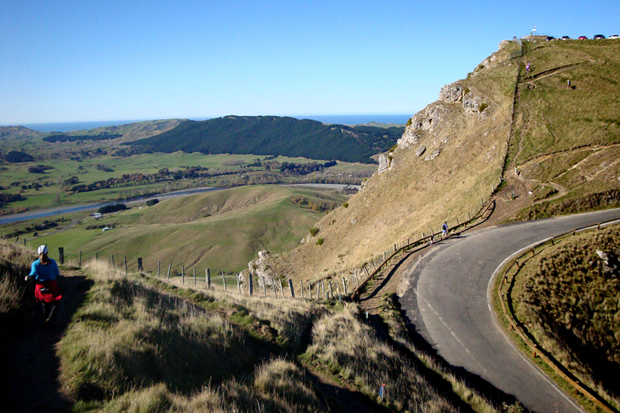 DSC04885 Published May 20, 2014 at 900 × 600 in Te Mata Terrific Tui 21km trail run (Hawke’s Bay) – 18 May ← Previous Next → What goes down, must go up. The trig point is visible at the top where the only marshal en route takes down race numbers.
