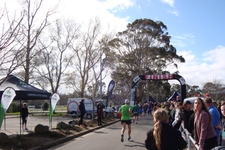 DSC05126s Published August 12, 2014 at 900 × 600 in Manawatu Striders Half Marathon ← Previous Next → The finish line at the Massey Rec site with Gerry approaching the finish banner. [Photo by Johann vd Merwe]