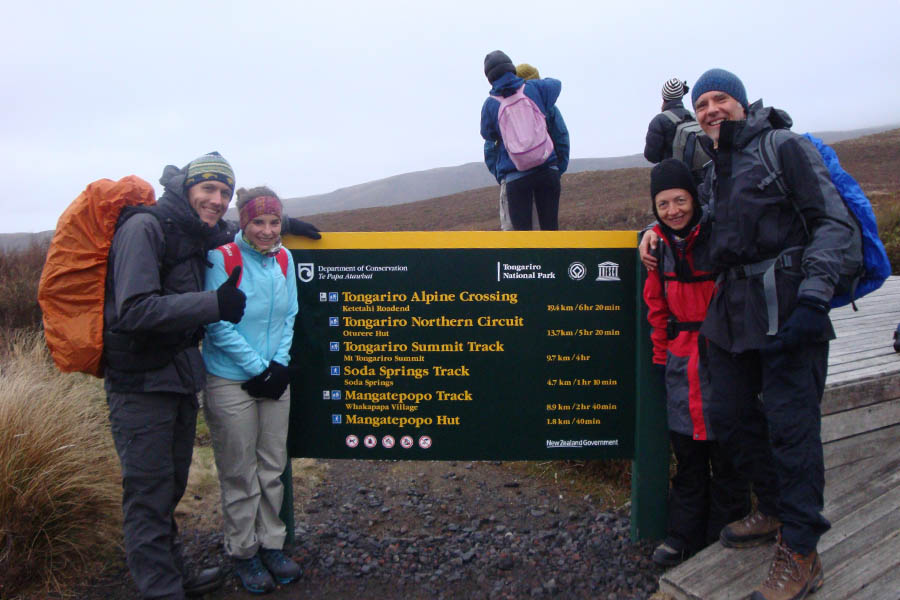 DSC05533 Published November 4, 2014 at 900 × 600 in Tongariro Alpine Crossing – 19.4 kilometres Next → At the start on a cold, windy, misty morning, Johann, Nettie, myself and Gerry.