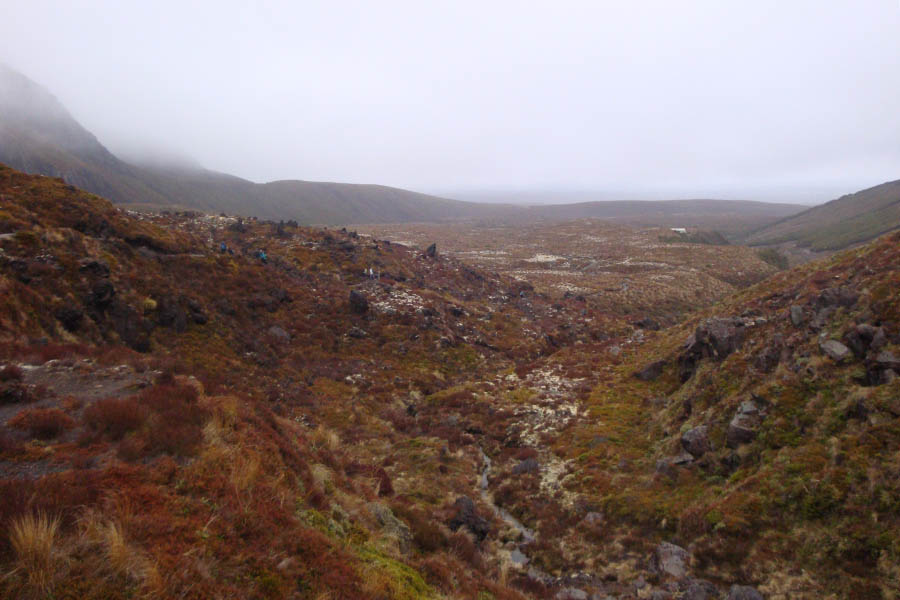 DSC05539 Published November 4, 2014 at 900 × 600 in Tongariro Alpine Crossing – 19.4 kilometres ← Previous Next → View towards the west with Mangatepopo Hut just visible on the right.