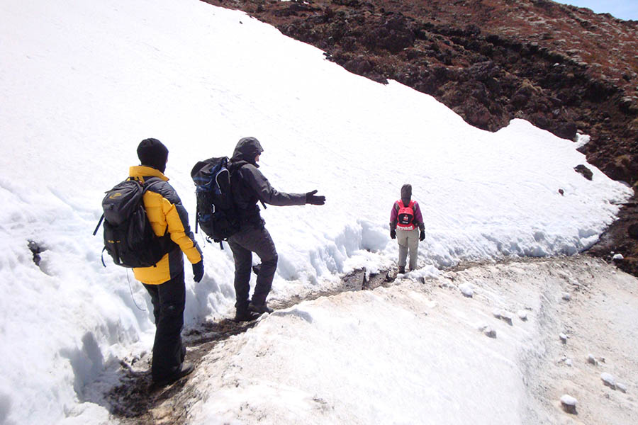 DSC05604 Published November 4, 2014 at 900 × 600 in Tongariro Alpine Crossing – 19.4 kilometres ← Previous Next → We only had little bits of slushy muddy snow on the track.
