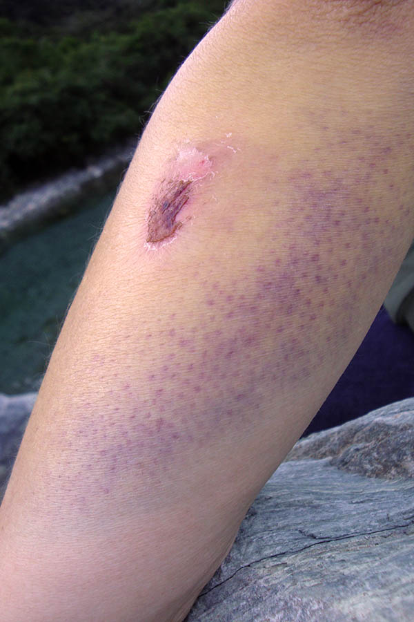 DSC06385s Published January 14, 2015 at 600 × 900 in Kepler Challenge training dry run ← Previous Next → 6 days after the fall. Blood filled my sweat glands to cause the “spotty” look?