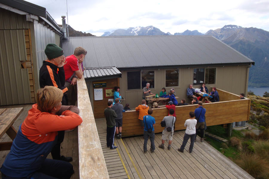 DSC06248 Published January 15, 2015 at 900 × 600 in Kepler Track – round #2 (24-27 December 2014) ← Previous Next → The hut ranger Pat, giving a talk about the environment. He also treated us to chocolates that was put out on the tables inside the communal area.