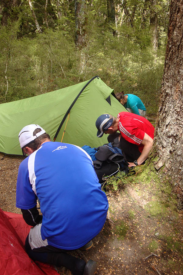 DSC06339 Published January 15, 2015 at 600 × 900 in Kepler Track – round #2 (24-27 December 2014) ← Previous Next → Hard at work pitching tents.