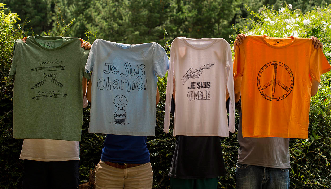 “Je Suis Charlie” (“I am Charlie”) became the slogan adopted by supporters of free speech and freedom of expression – it popped up everywhere, in cartoons, hand-made placards and stickers, displayed on mobile phones at vigils, and on numerous websites.
