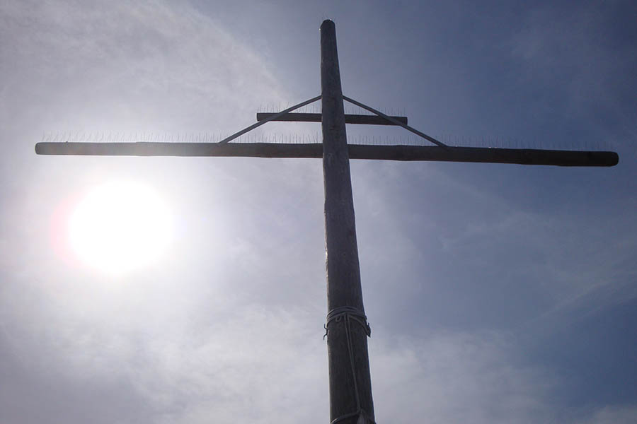 DSC06444 Published January 18, 2015 at 900 × 600 in Lake Kaniere track ← Previous Next → This cross near the spit has lots of hooks where different flags used to be attached, to inform incoming boats of the conditions at the entry of the bay.