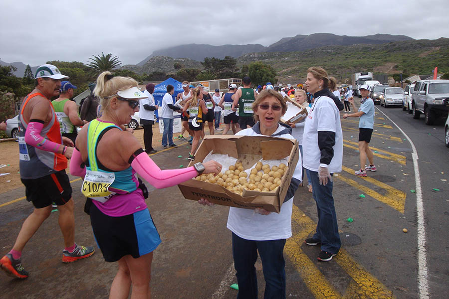 DSC06792 Published April 29, 2015 at 900 × 600 in Old Mutual Two Oceans Marathon ← Previous Next → Yay! Salty boiled potatoes at the bottom of Ou Kaapseweg.