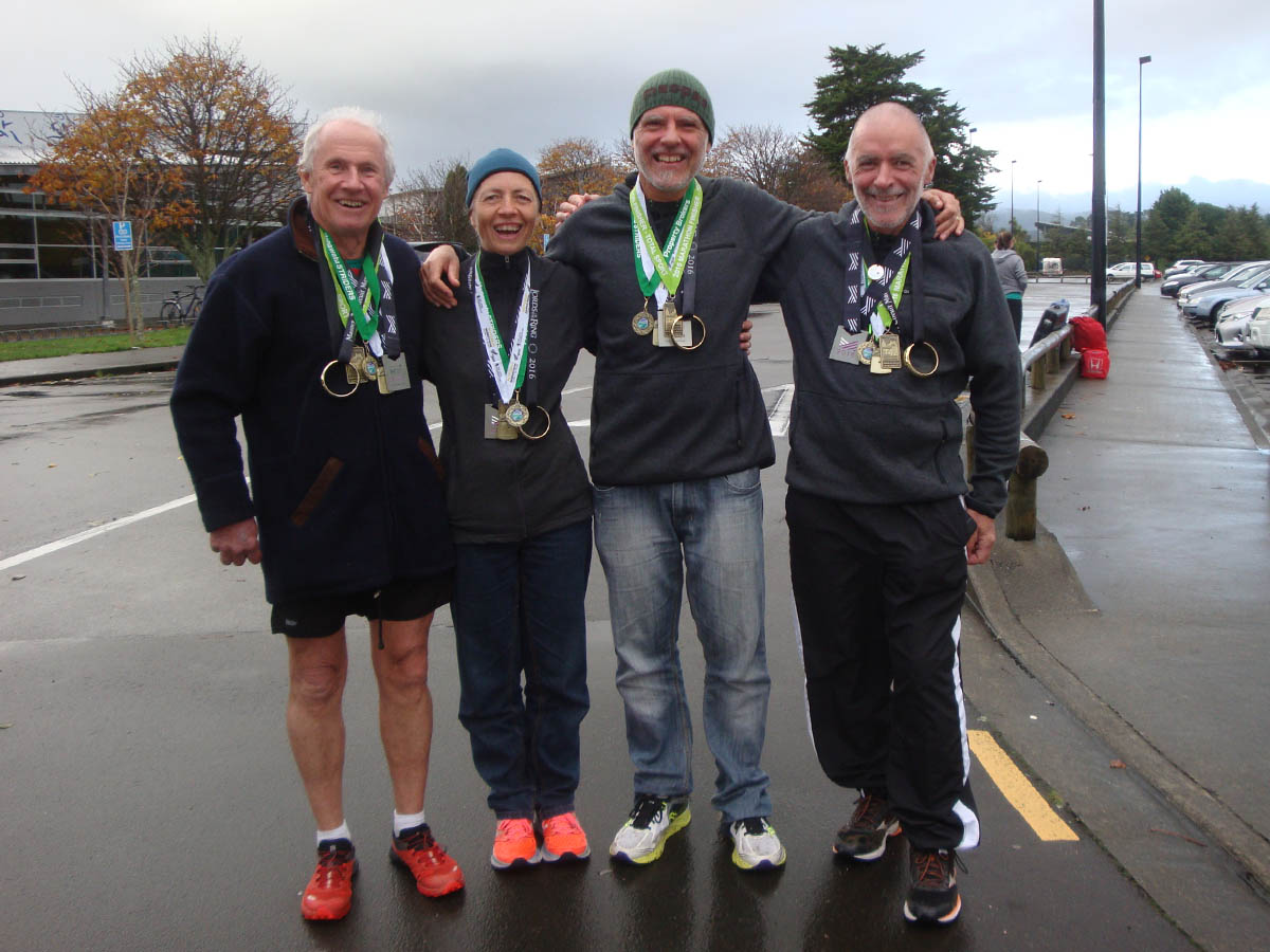 DSC07664 Published June 13, 2016 at 1200 × 900 in #5 Manawatu Striders inaugural marathon ← Previous Next → Showing our bling – Rob, me, Gerry and Graeme.