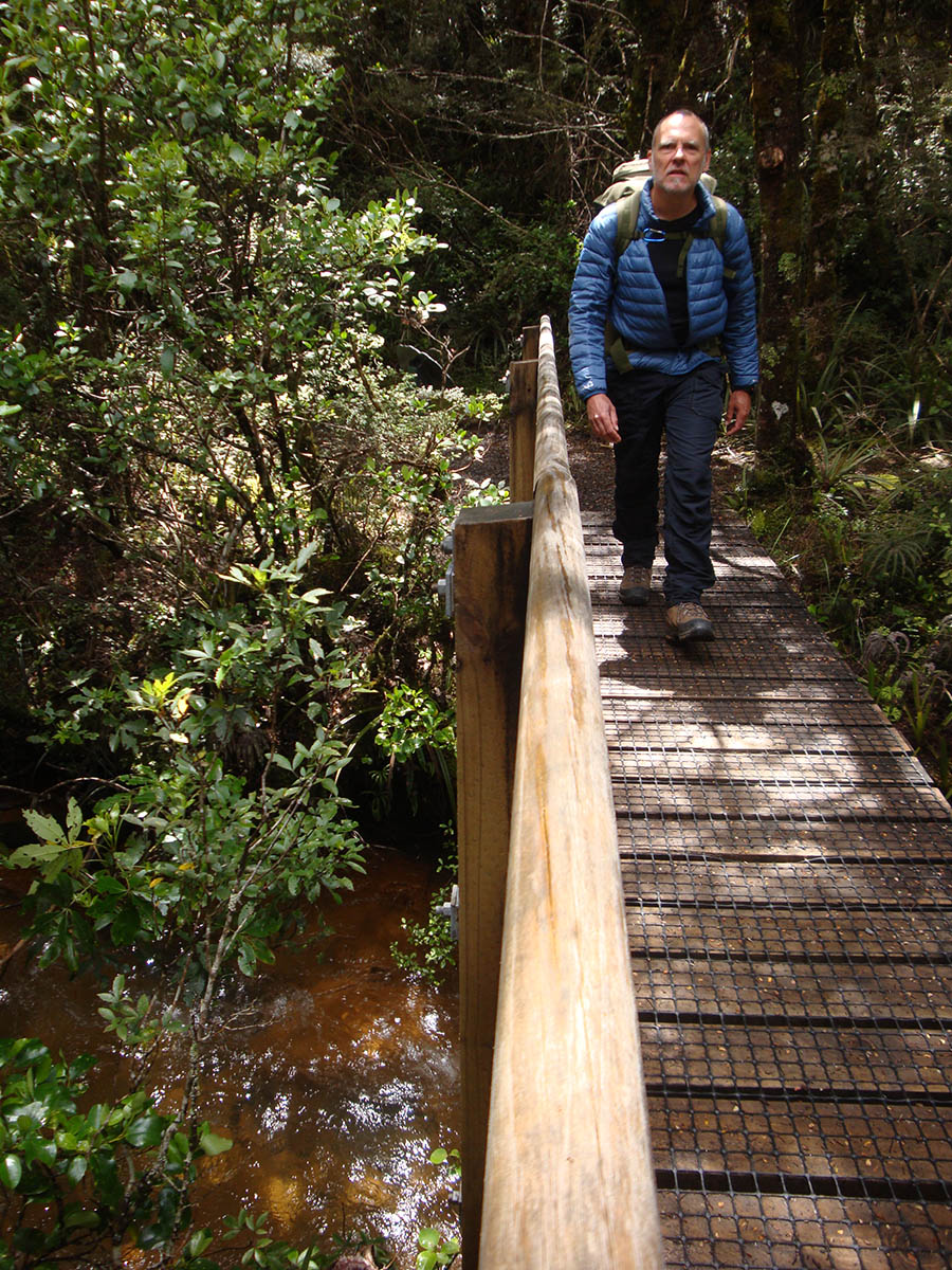 dsc07989 Published December 31, 2016 at 900 × 1200 in Round the Mountain: anti-clockwise ← Previous Next → Gerry crossing the Golden rapids – yellow coloured due to the high iron content in the stream.