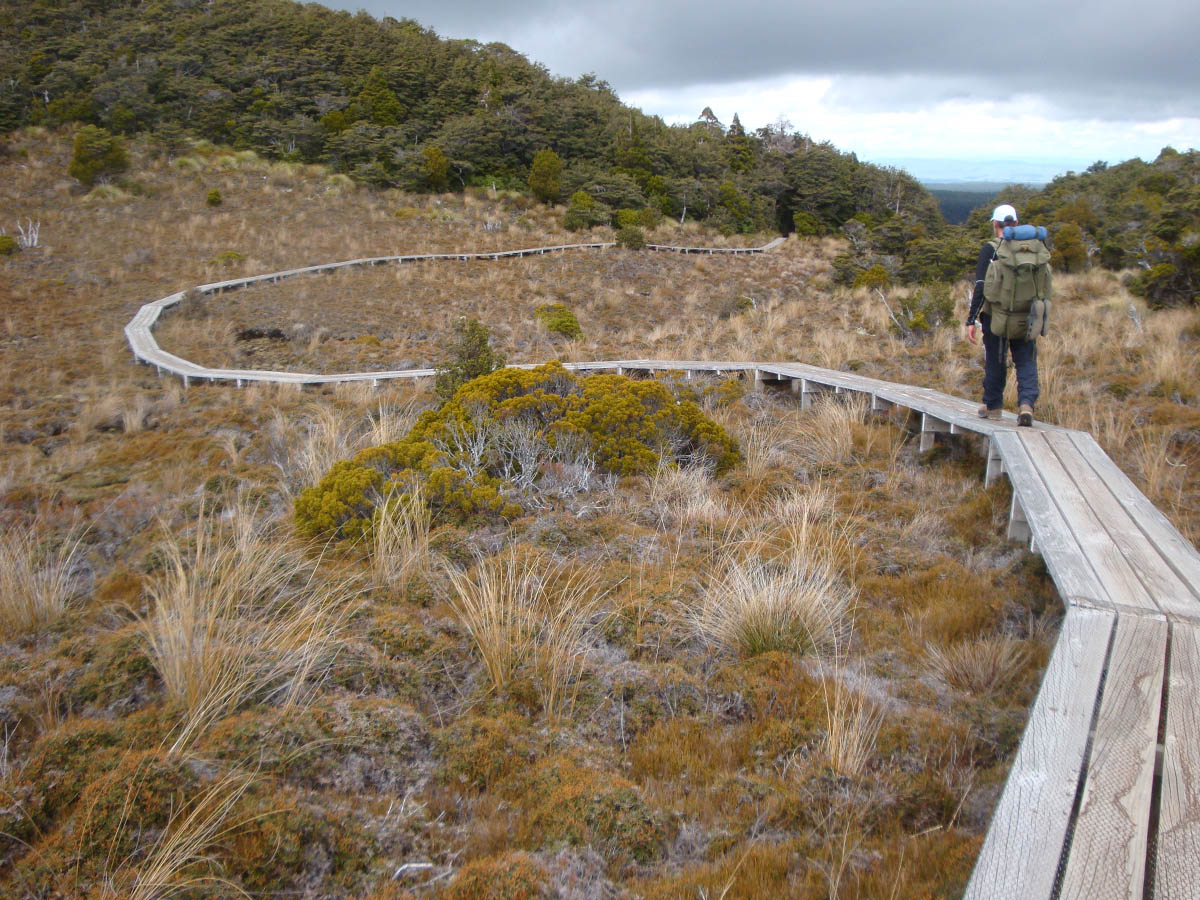 dsc08090 Published December 31, 2016 at 1200 × 900 in Round the Mountain: anti-clockwise ← Previous Next → To avoid erosion and the native plants being trampled, another neatly laid out section of the path goes through the tarn.