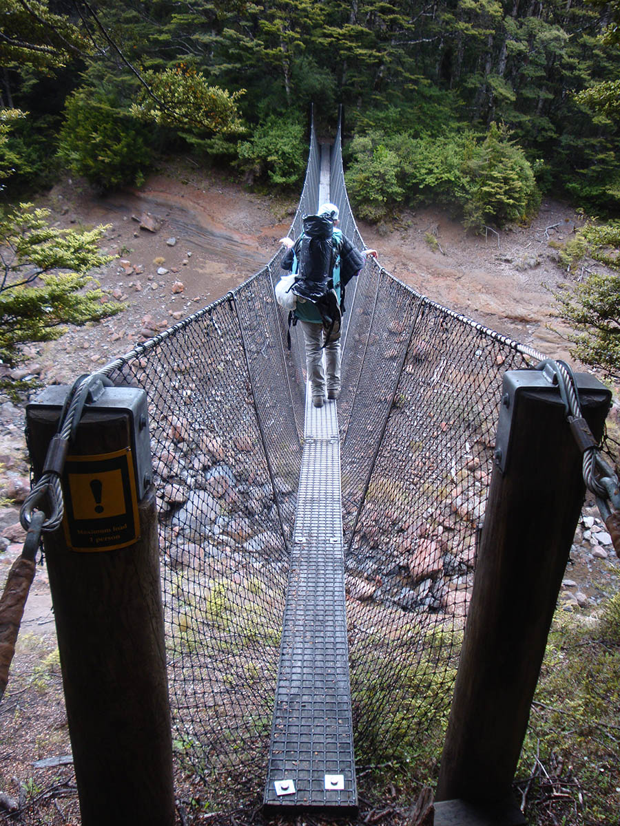 dsc08093 Published December 31, 2016 at 900 × 1200 in Round the Mountain: anti-clockwise ← Previous Next → The first of a number of one-person swing bridges, crossing high above the stream.