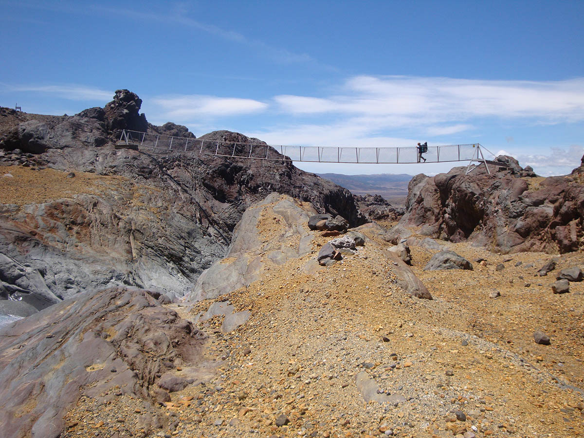 dsc08167 Published December 31, 2016 at 1200 × 900 in Round the Mountain: anti-clockwise ← Previous Next → The swing bridge across the Whangaehu River’s lahar valley is the highest and most daunting of all.