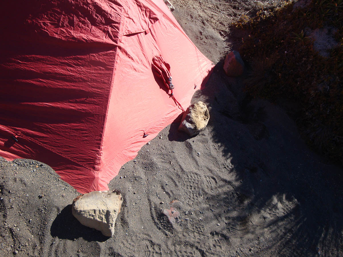 dsc08184 Published December 31, 2016 at 1200 × 900 in Round the Mountain: anti-clockwise ← Previous Next → Stacking sand over the sides of the flysheet to avoid the wind turning the tent into a giant red kite.