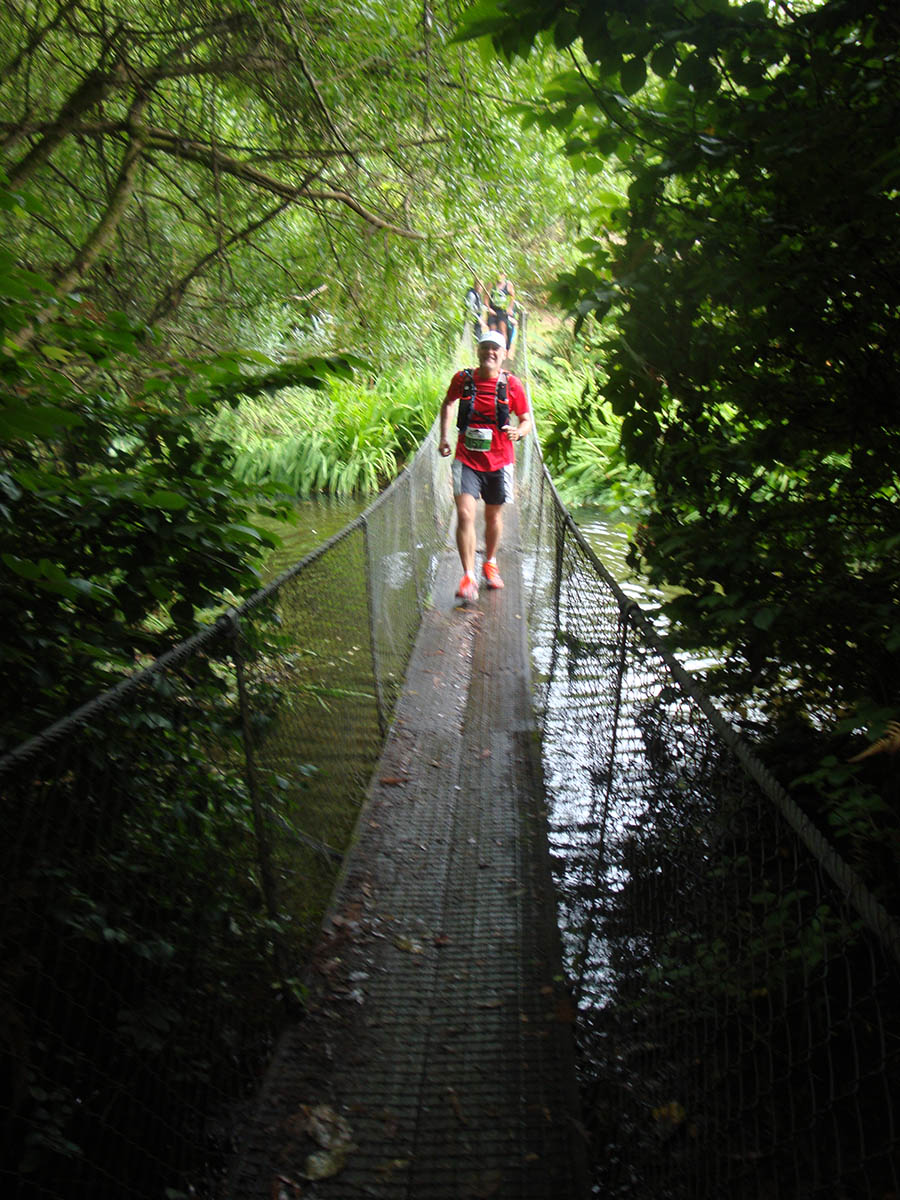 dsc08275 Published January 16, 2017 at 900 × 1200 in Doing a hip hop on a half* ← Previous Next → Gerry on the first of the two swing bridges.