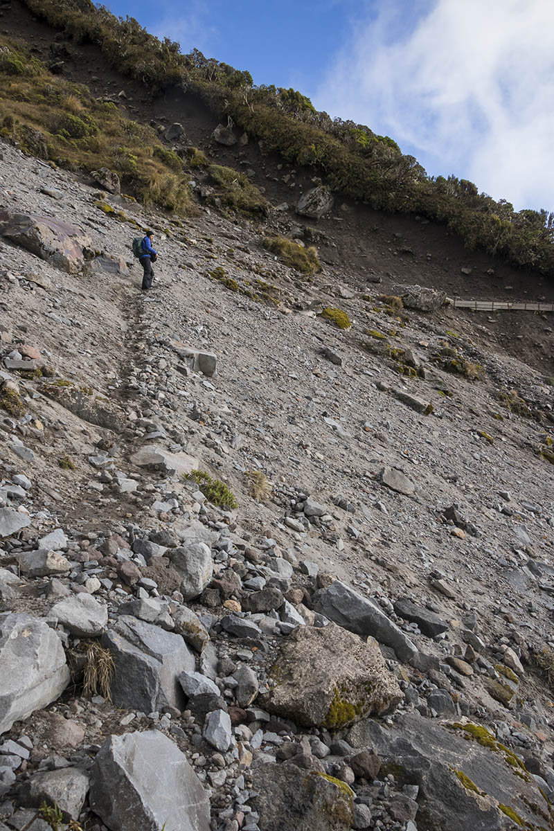 sciencelens_7972s Published June 18, 2017 at 800 × 1200 in A tail in three parts – Pouakai Crossing ← Previous Next → Signs at either side of Boomerang Slip, cautioning hikers to cross the slip one at a time.
