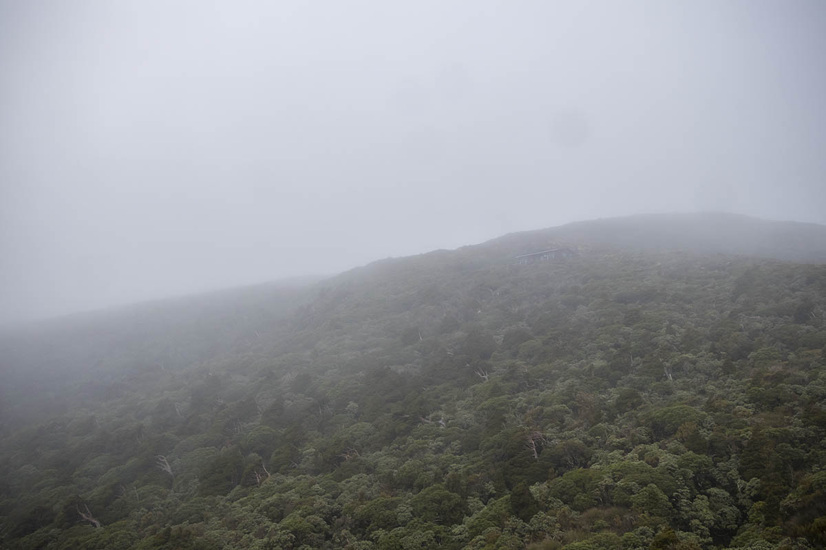 sciencelens_8078s Published June 18, 2017 at 1200 × 800 in A tail in three parts – Pouakai Crossing ← Previous Next → Pouakai Hut only just visible in the mist.