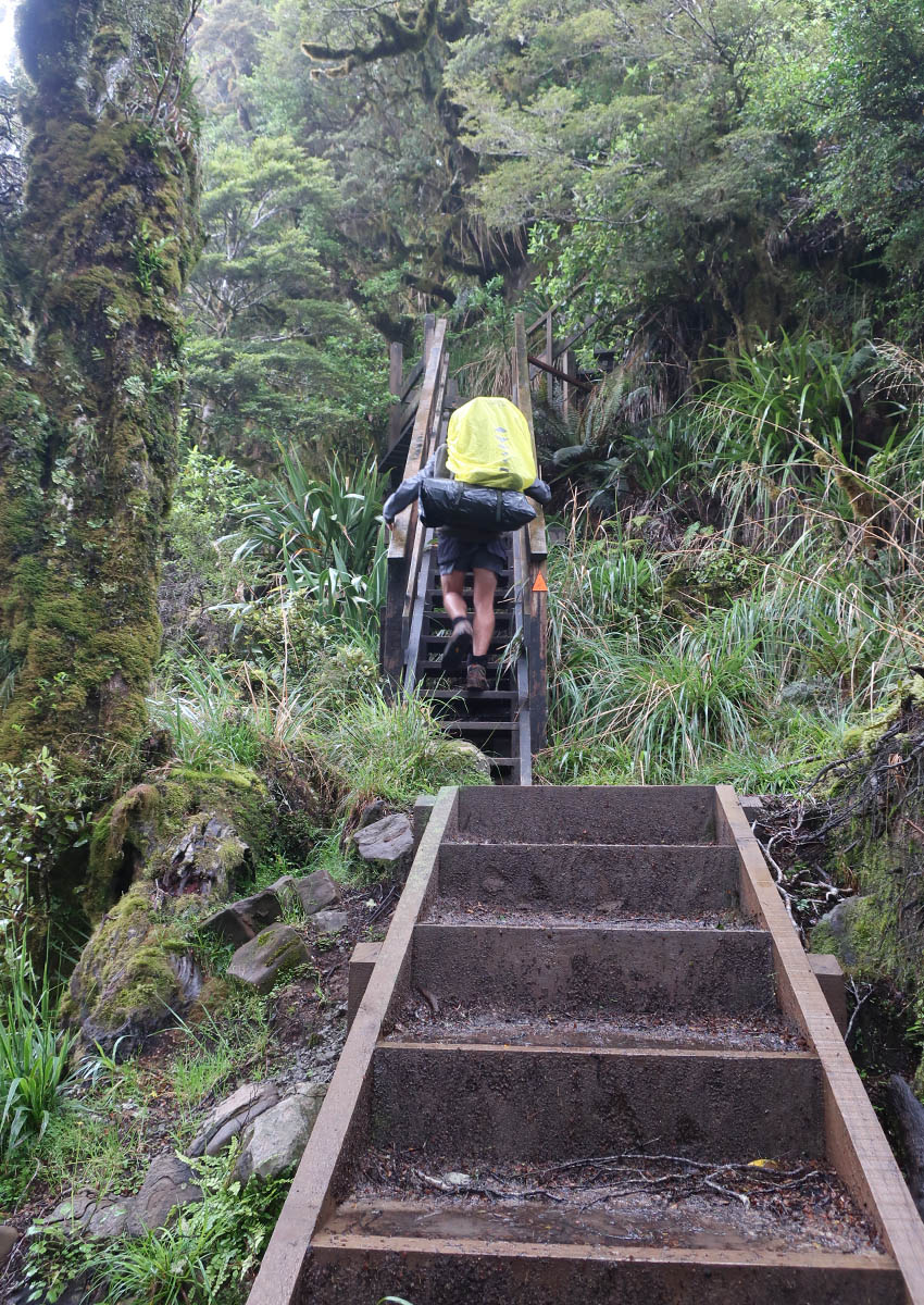 IMG_0618 Published January 9, 2018 at 850 × 1200 in Lake Waikaremoana Great Walk ← Previous Next → Stairs are provided where the uphill gets very steep.