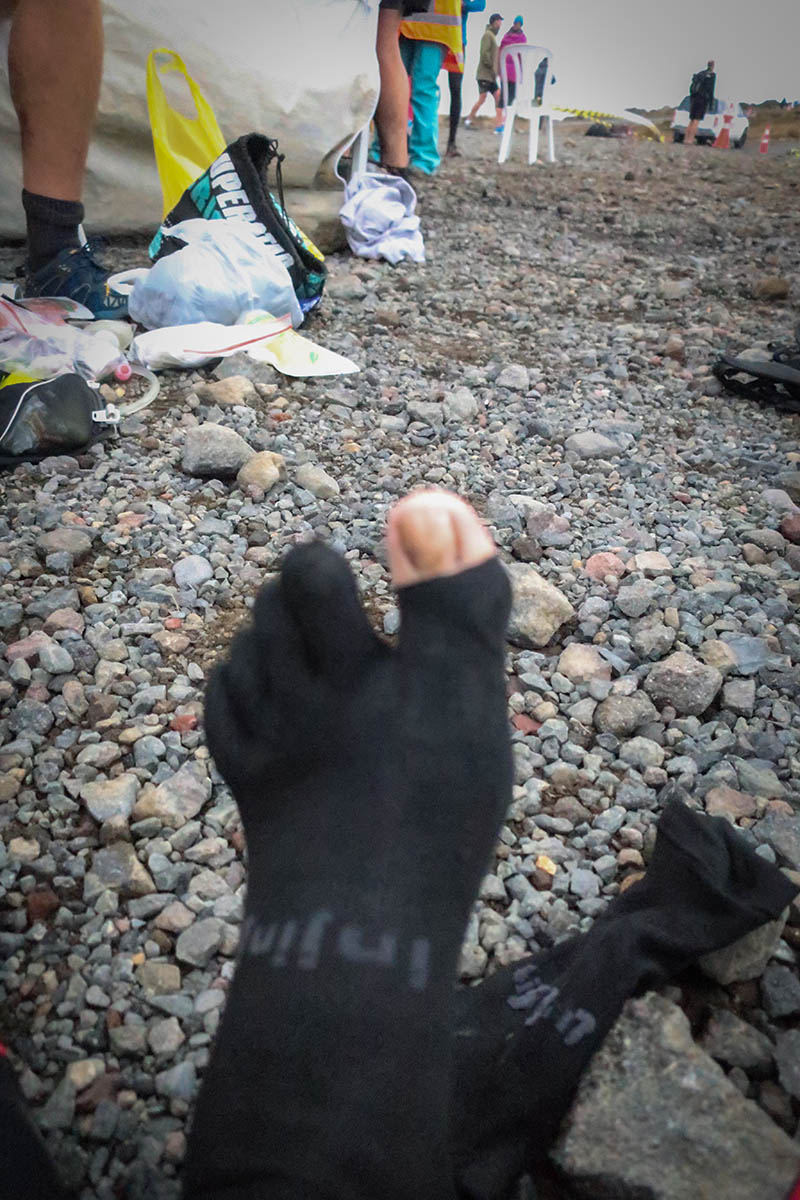 IMG_2521 Published April 14, 2018 at 800 × 1200 in Ring of Fire (ROF) Volcanic Ultra ← Previous Next → Injinjis are great socks, especially in wet conditions, but when they go, they go.