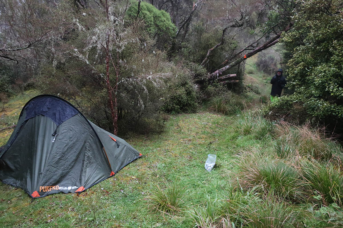 IMG_2951 Published November 6, 2018 at 1200 × 800 in Hill repeats with weights – Aorangi Undulator marshalling duties on the mountain ridge above Washpool Hut ← Previous Next → Our marshalling spot, geared with gels, tent, stove and camera.