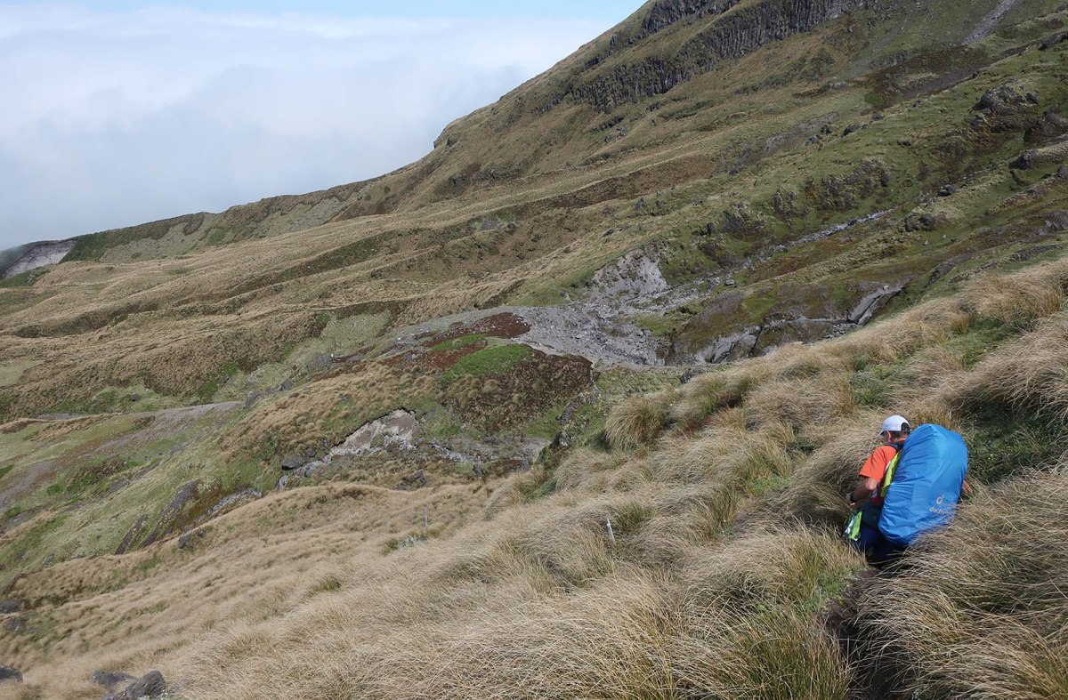 img_3275 Published January 11, 2019 at 1600 × 1050 in Around the mountain circuit – Mt Taranaki ← Previous Next → Walking high was a mix of tussock and rocky, eroded valleys.