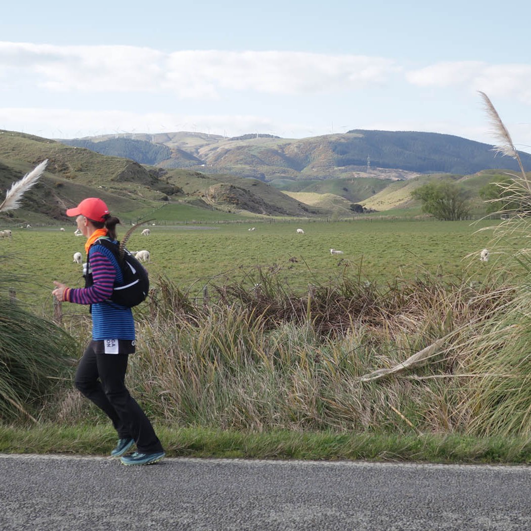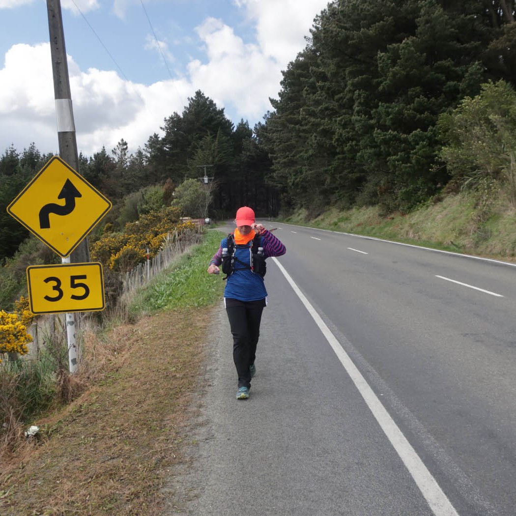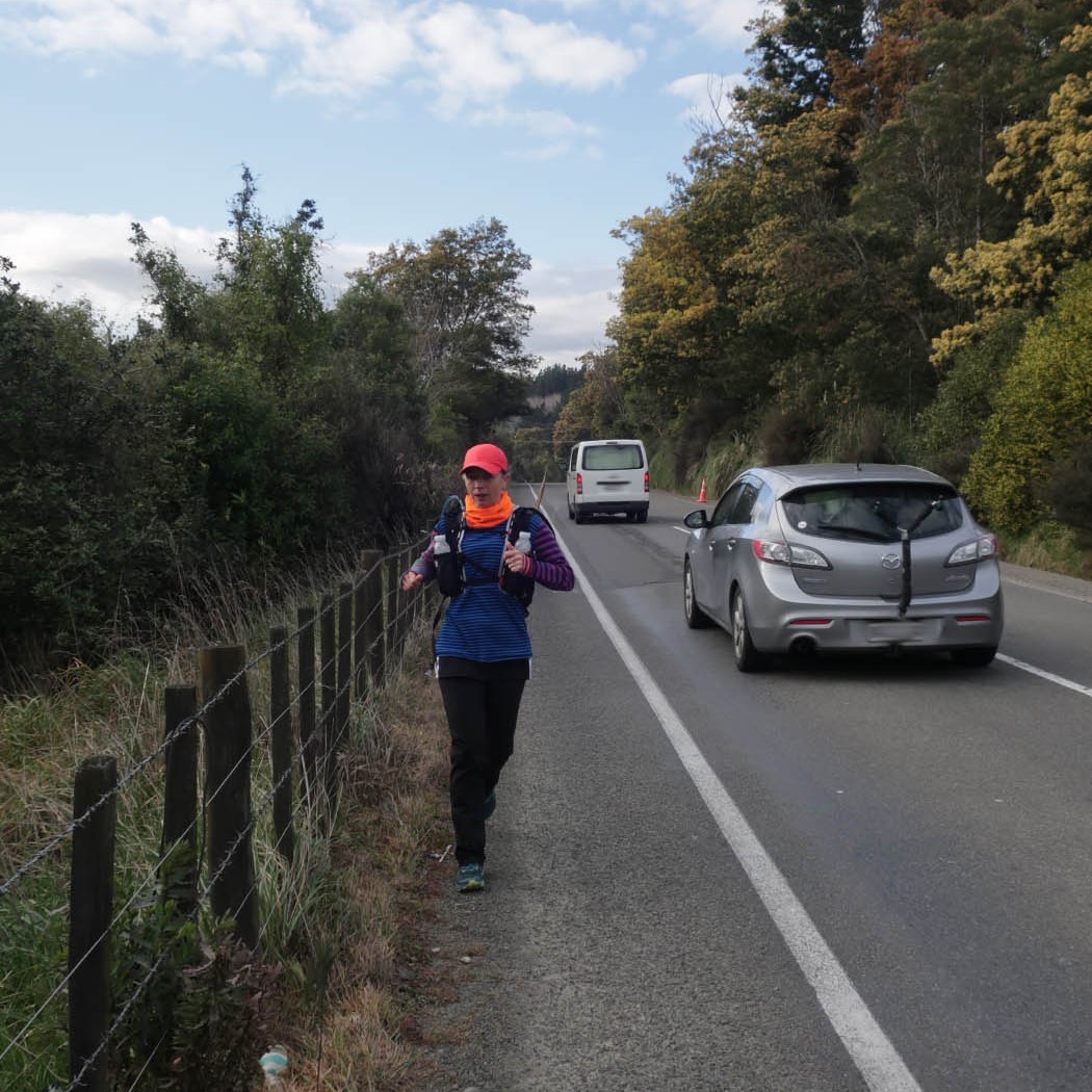 Hitting Pahiatua Track (24km into the run), the road was busy as always. It is not the best road to run on, with only a narrow shoulder, and some parts lacking a shoulder altogether. For short sections we were somewhat sheltered from the wind, but most other times the headwind would blow me to a standstill. Lots of cars were out on the road.