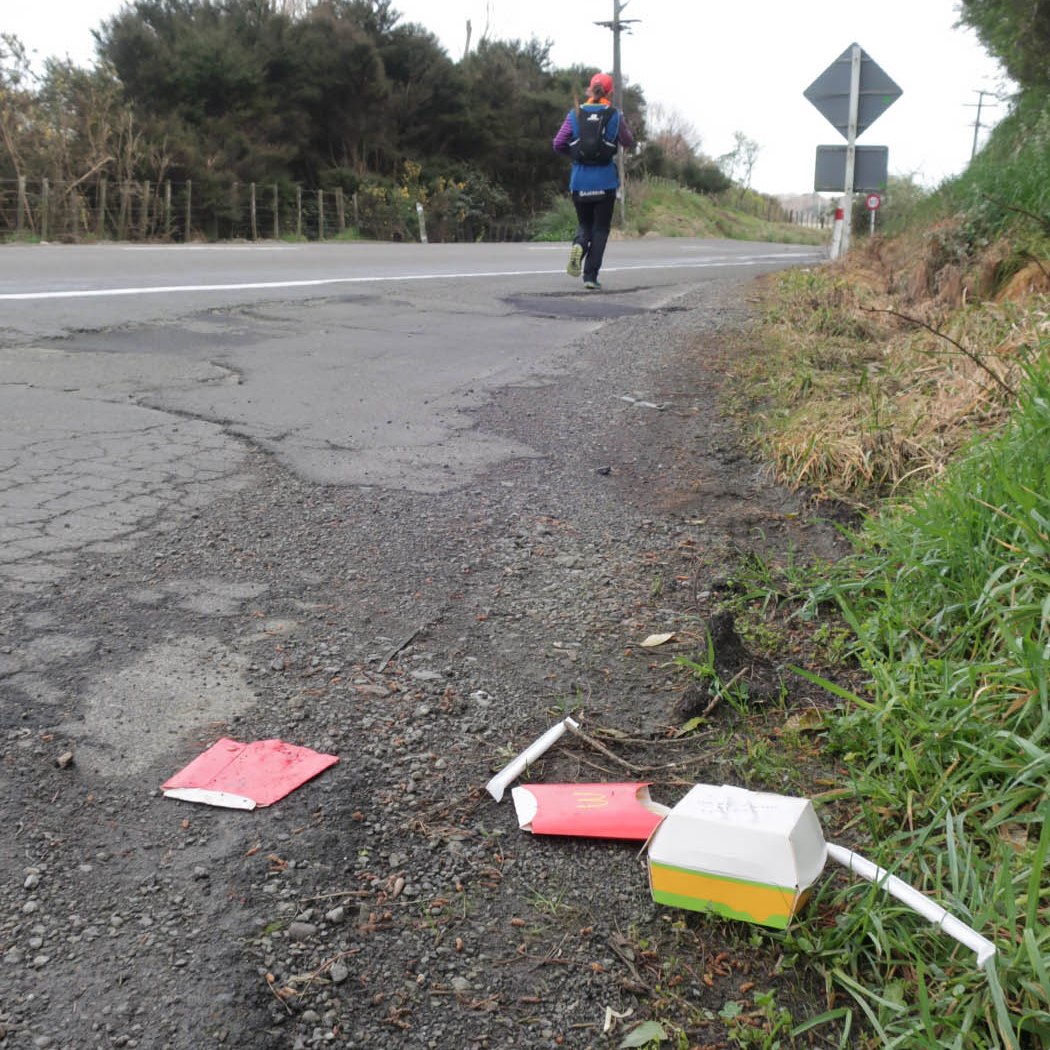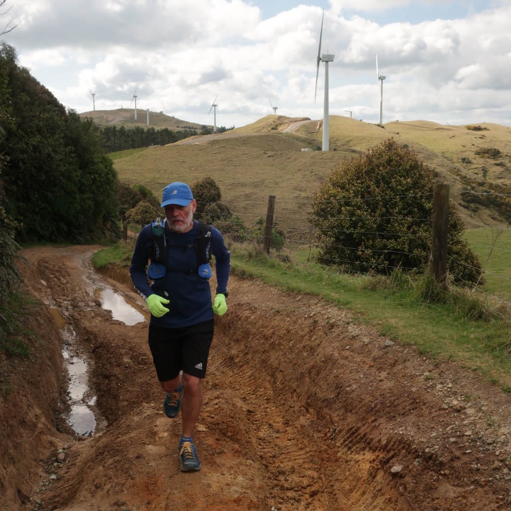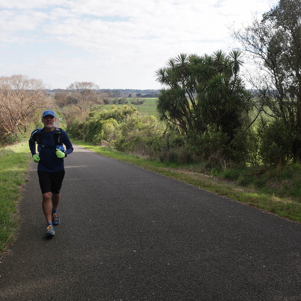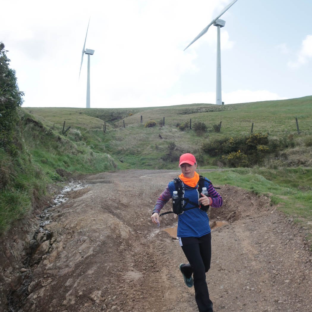 Hitting Pahiatua Track (24km into the run), the road was busy as always. It is not the best road to run on, with only a narrow shoulder, and some parts lacking a shoulder altogether. For short sections we were somewhat sheltered from the wind, but most other times the headwind would blow me to a standstill. Lots of cars were out on the road.