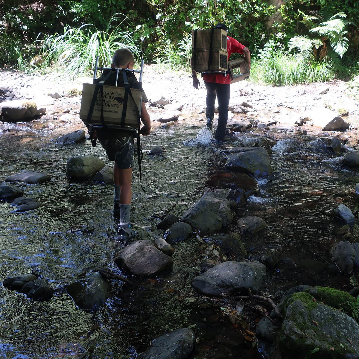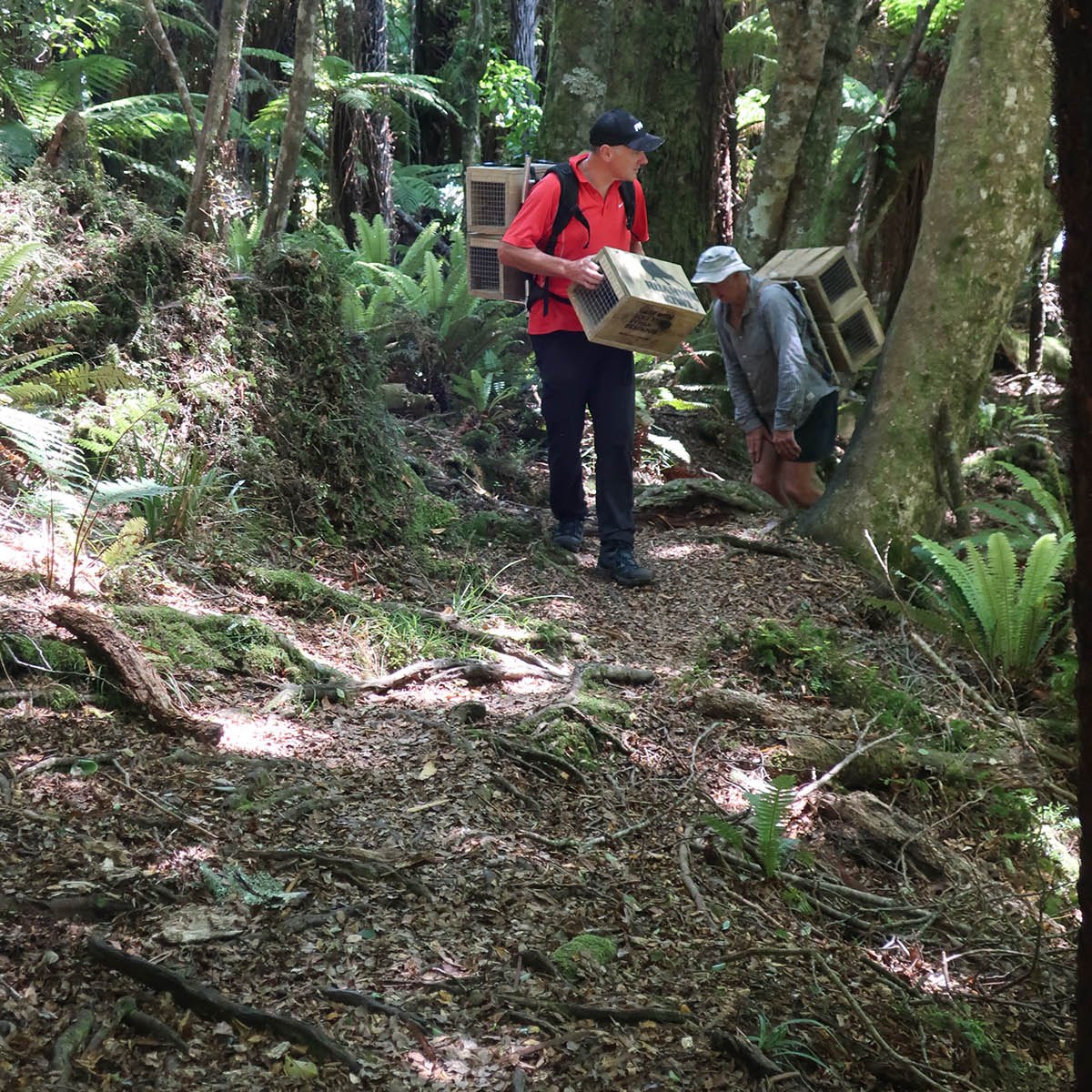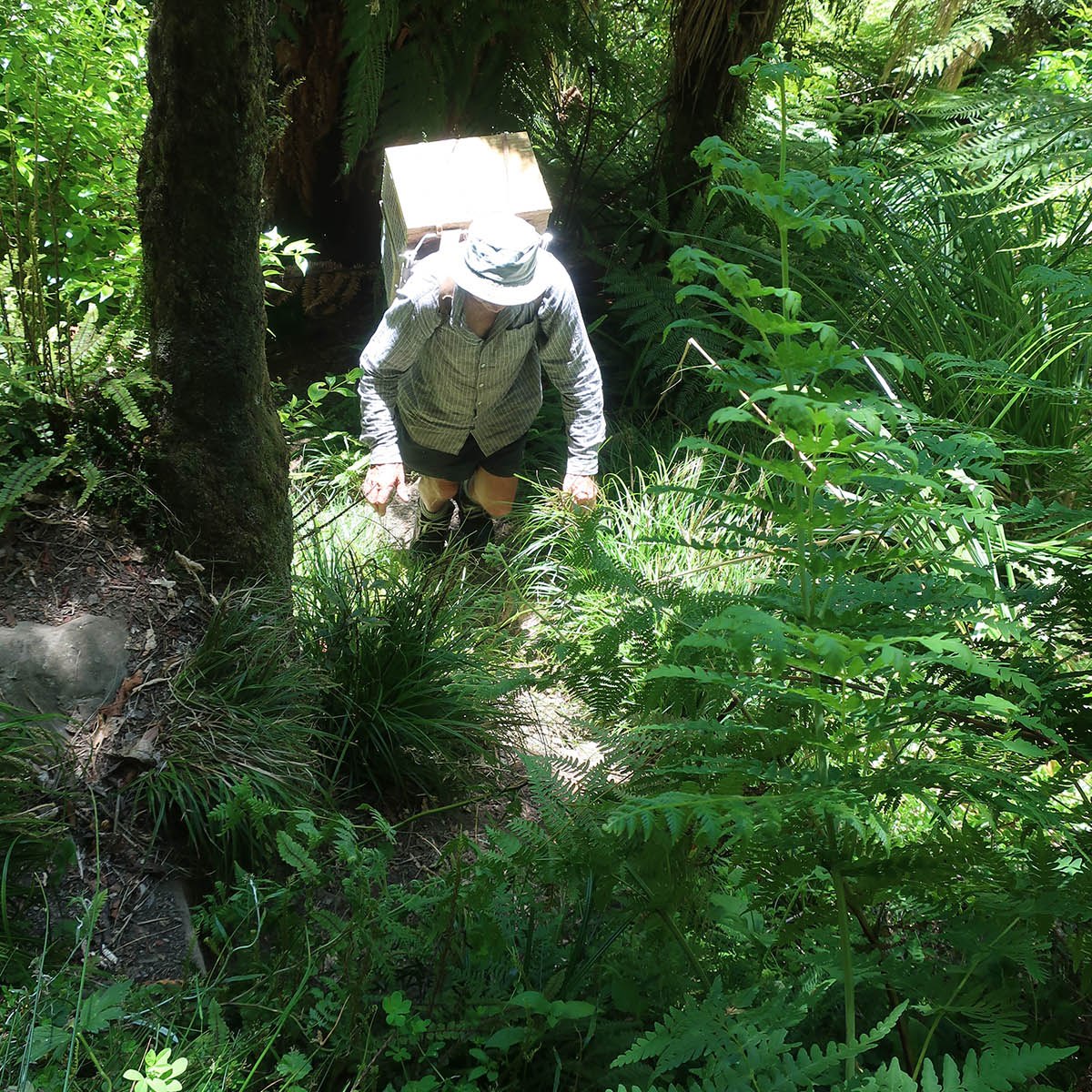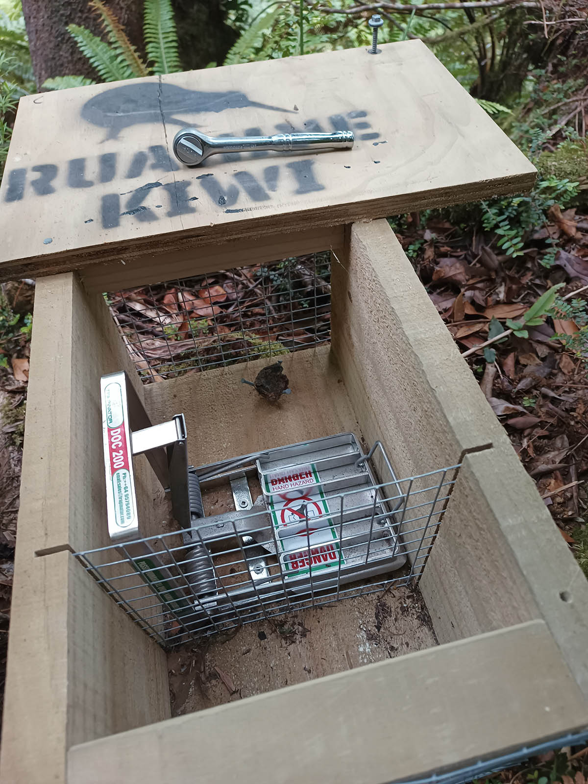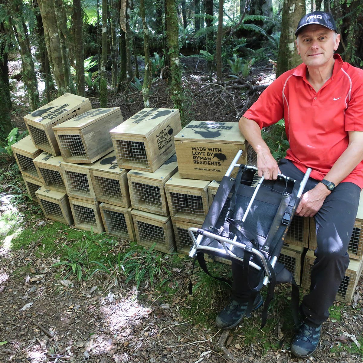 Now just to get enough traps made so they can be distributed in the project area. While we can build the wooden boxes, the trap mechanisms are manufactured in Auckland, and due to COVID-19 restrictions, they have not been able to keep up with the demand. This is somewhat problematic, but at least Ian still has quite a few ready and waiting at his place. Carrying traps into the mountain at only two per person, is in any case slow and hard work, and not something that can happen overnight.