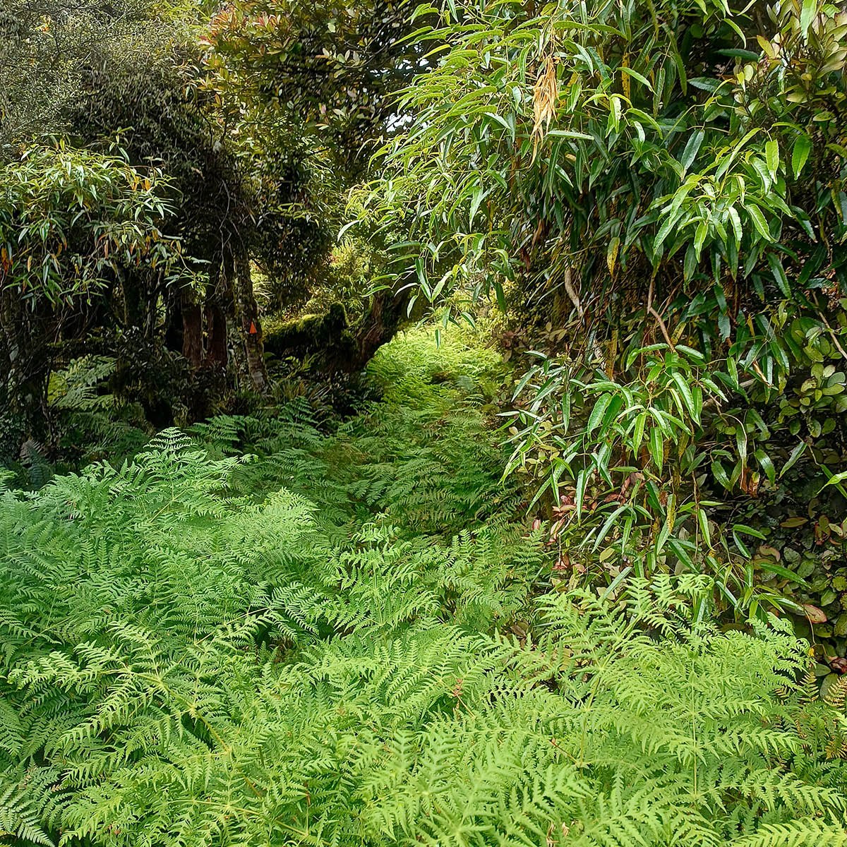 He showed us a few landmarks, or attractions that are part of a horse trek outing, among others an old cedar tree stump that still contained slits cut into the trunk as foot holds for the tree fellers to saw higher up the trunk. There’s also an abandoned old blue Bedford truck hidden in the bush since 1983 (last date on the licence) when the owner parked it for good. It is completely overgrown with lichen and hidden in plain sight right next to the road. A bizarre, but quite amazing sight, with an interesting history, I’m sure. Even though there are quite a few massive red beech trees on the farm, one giant in particular is a favourite landmark on the horse treks.