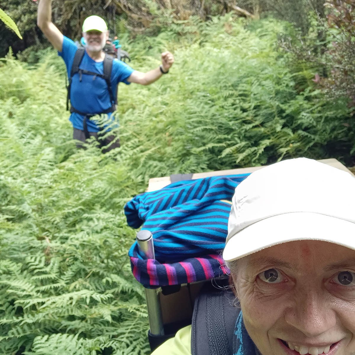 Luckily Gerry could juggle his working hours, so came with us to help carry traps. The weather forecast didn’t look too flash, but it turned out quite nice for most of the day. We each carried two traps (#5-10 on the trapline) to their spots on Shorts Track, some 3km and 450 metres elevation from where we left them the previous time. The first bit is a reasonable gradual uphill, but then the climbing starts in all earnest on some super steep sections. Carrying the weight of two wooden traps and some emergency gear, food and water, is hard yards.