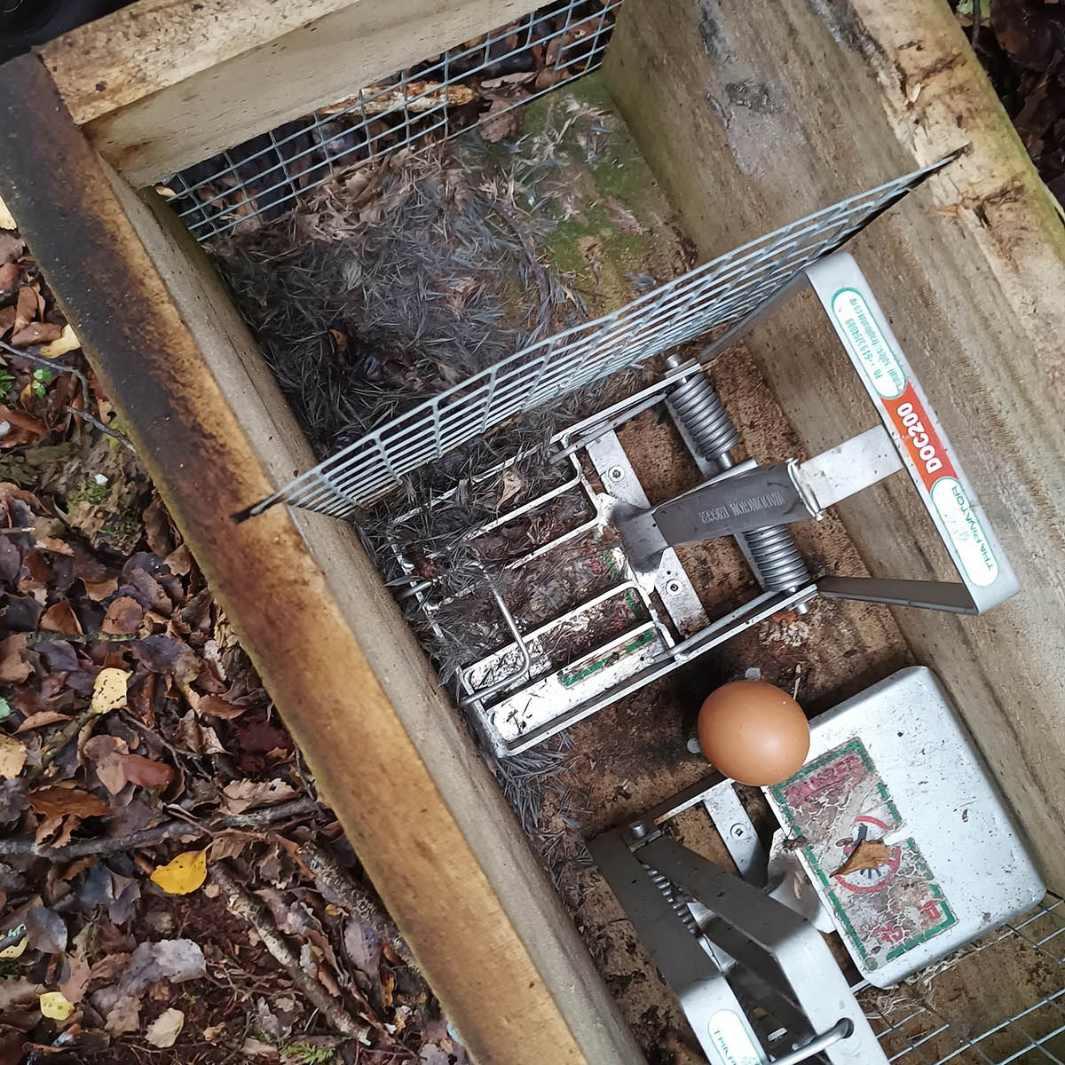 All up, we got six hedgehogs and a rat on the 36 traps. He also has a few possum kill traps in trees, and we saw at least one dead possum.