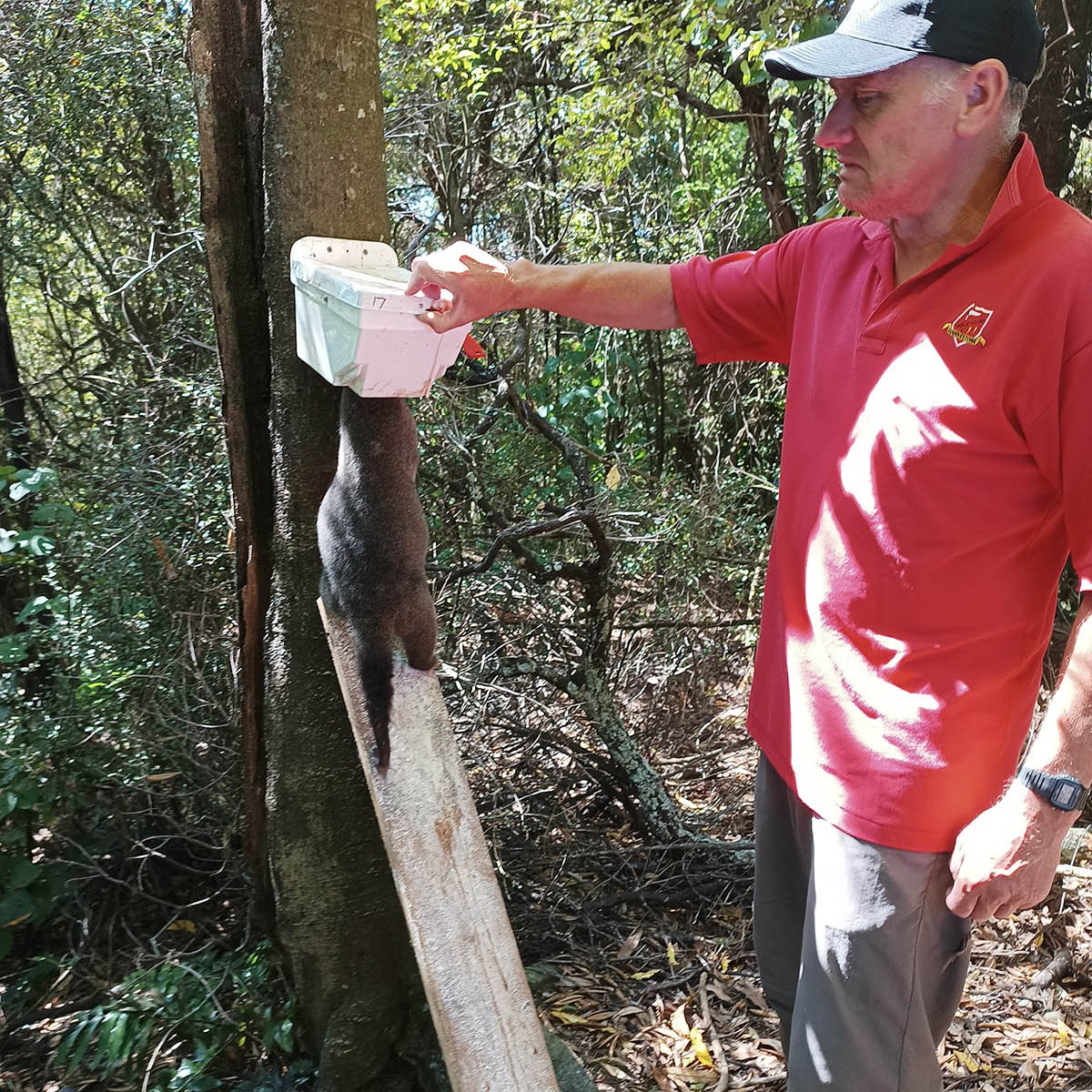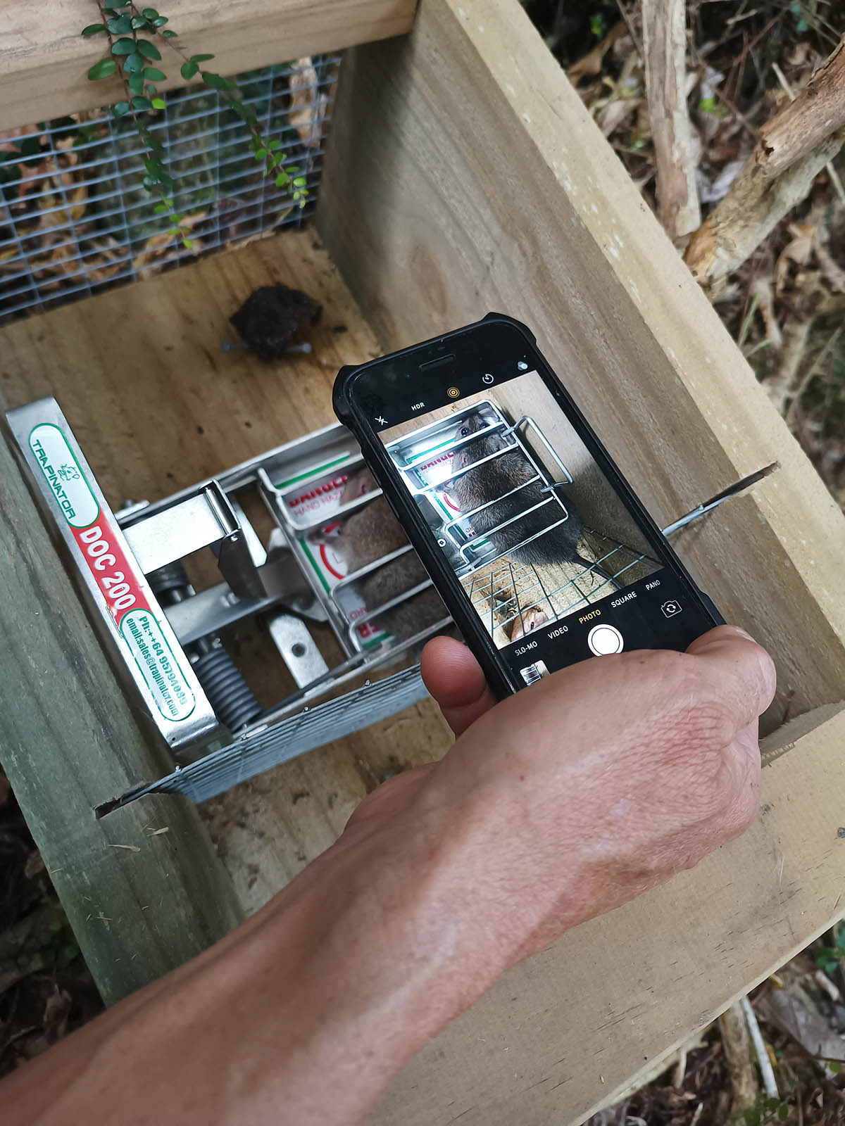 We met at the usual spot in Ashhurst, where Ian picked us up to collect 17 new traps from Ryman Residents. Afterwards we drove out to Ian’s farm to check that everything was working as it should, and spray-paint them with our logo.