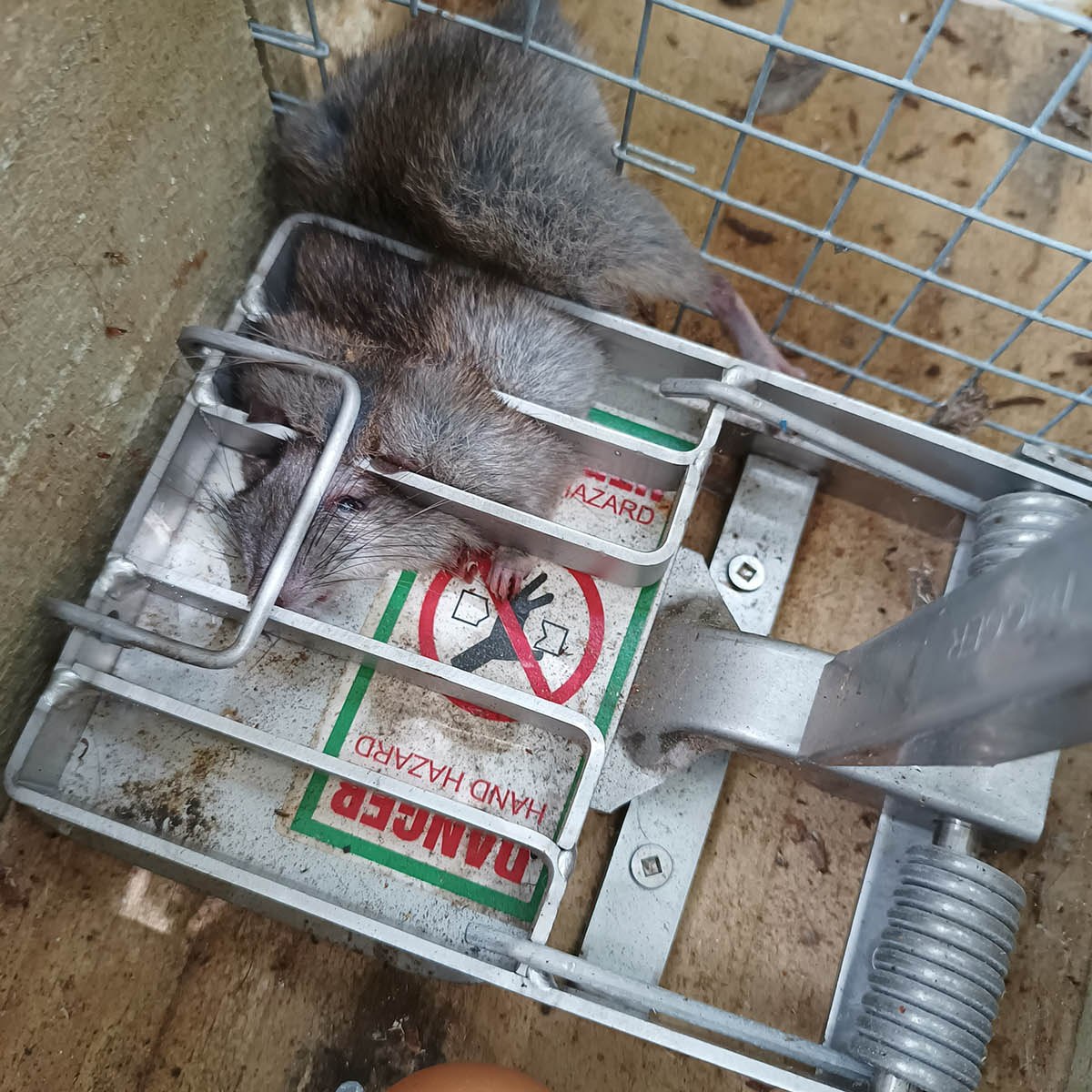 We started checking the traps, and quite a good few of them had killed something. Mostly it was hedgehogs, but also a few rats. In one of them, only the head of the rat remained. Something else got hold of the body and ate everything – bones, guts and all, or dragged it away.