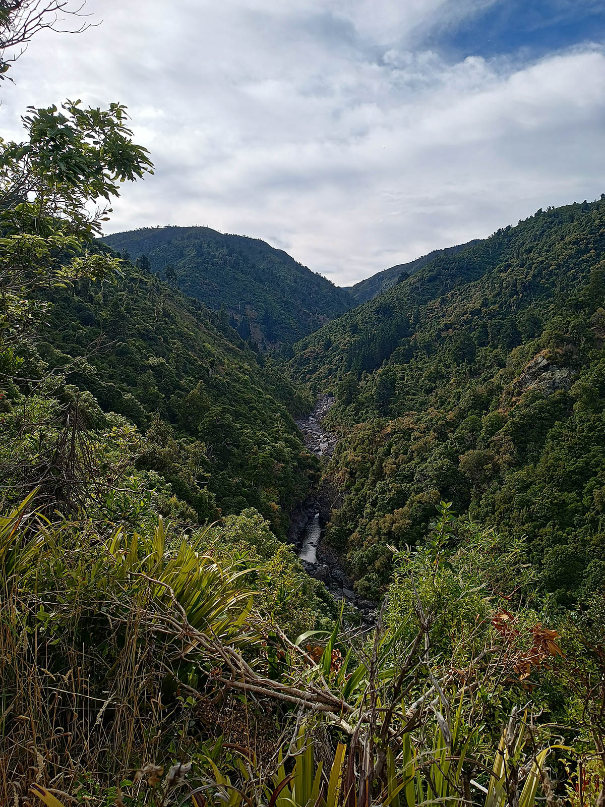 This trapline follows the edge of the bluff, and at one point, Nina showed me a viewpoint in a clearing, with Ski Station just across the gorge from where we access the Mid-Pohangina trapline. The latter was on the agenda for the following day.